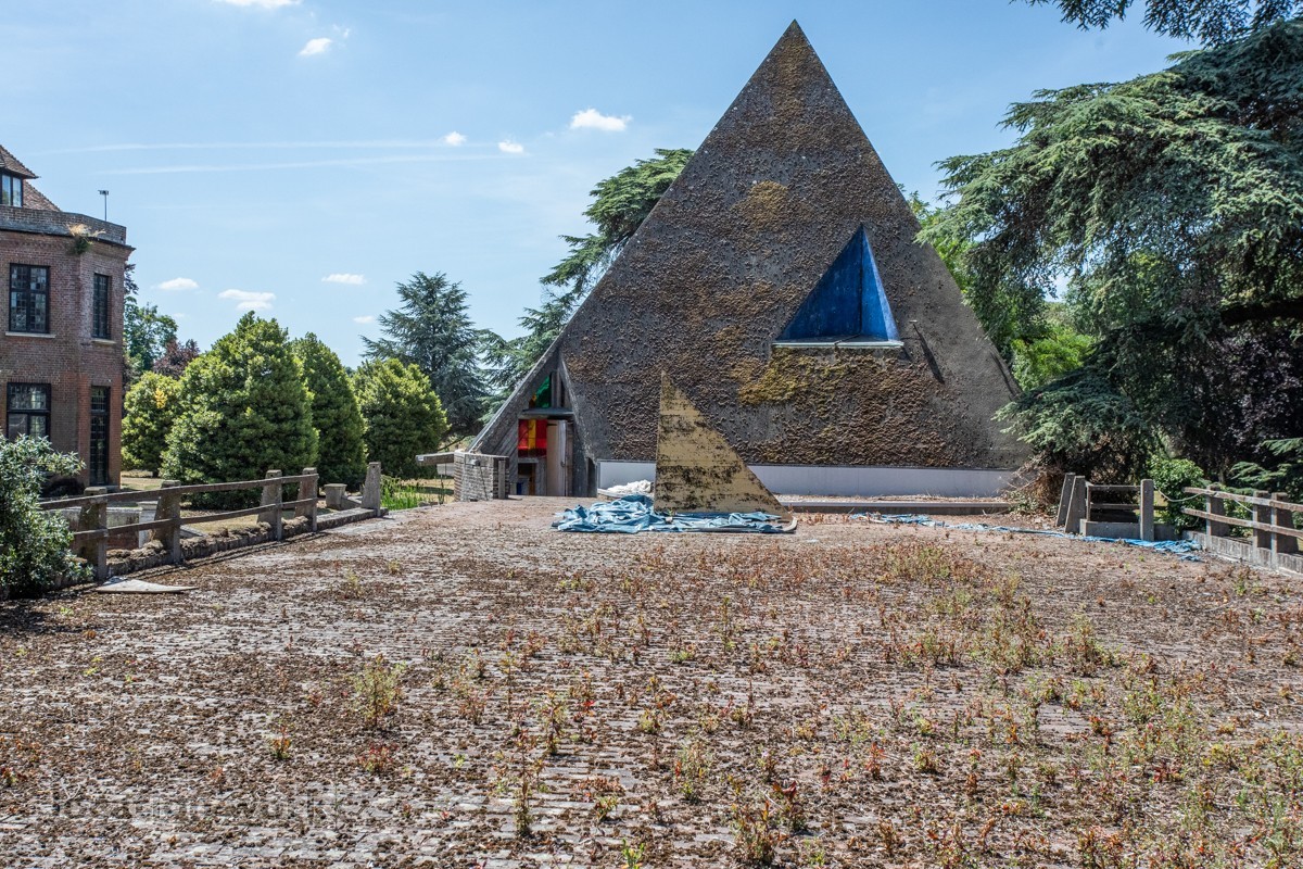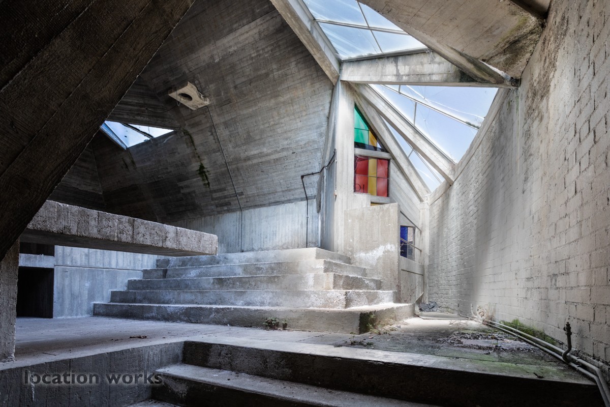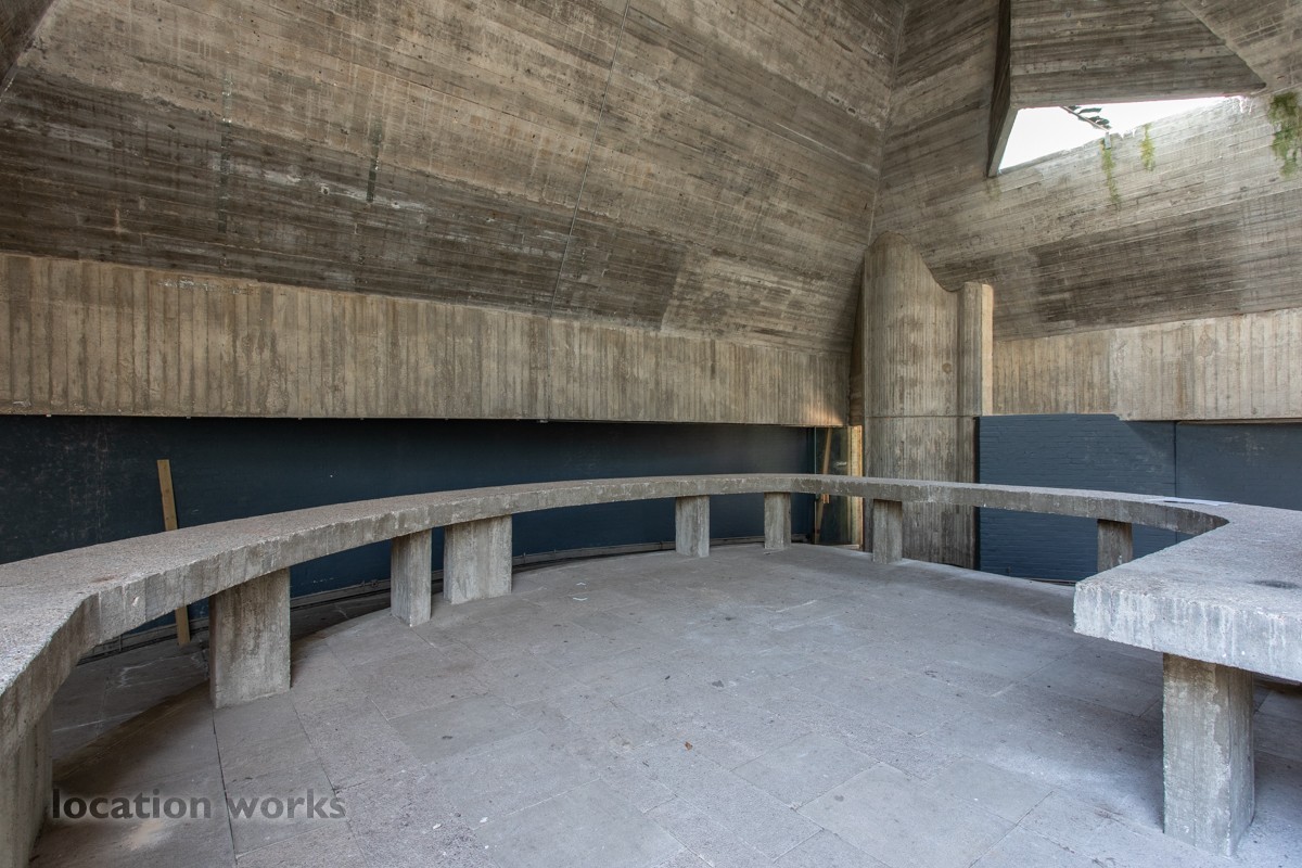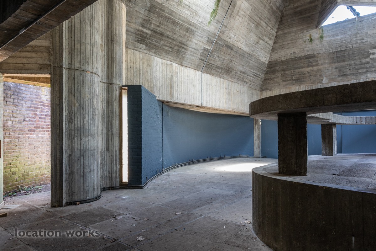 | Concrete pyramidal art gallery in the 'brutalist' style, Oxfordshire.
