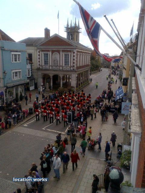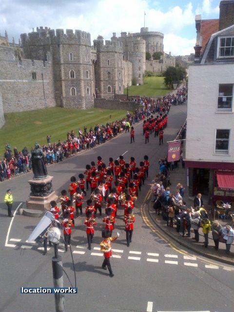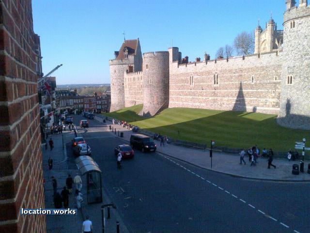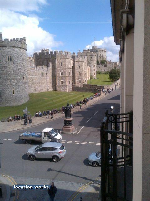 | Three juliet balconies overlooking Windsor Castle, with interior space for camera crews. Berkshire.