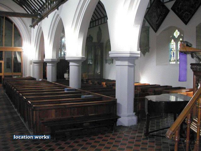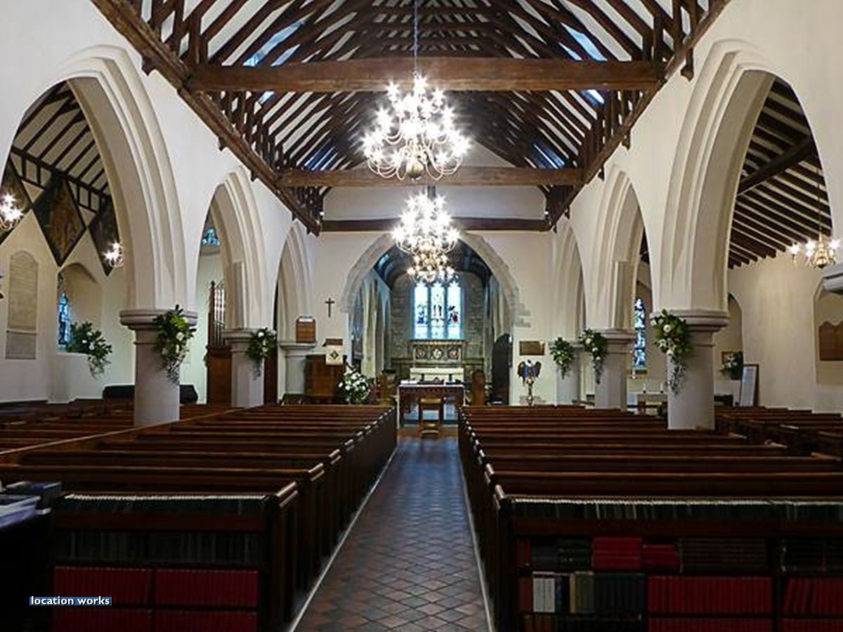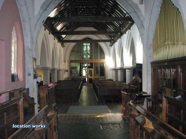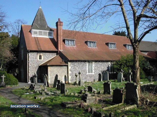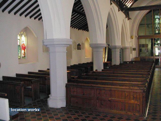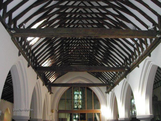 | 11thC church, south west London, with beautiful nave roof and stained glass windows.
