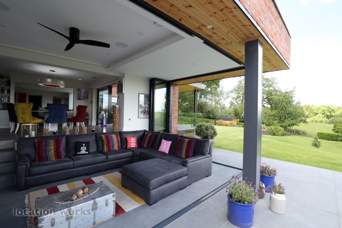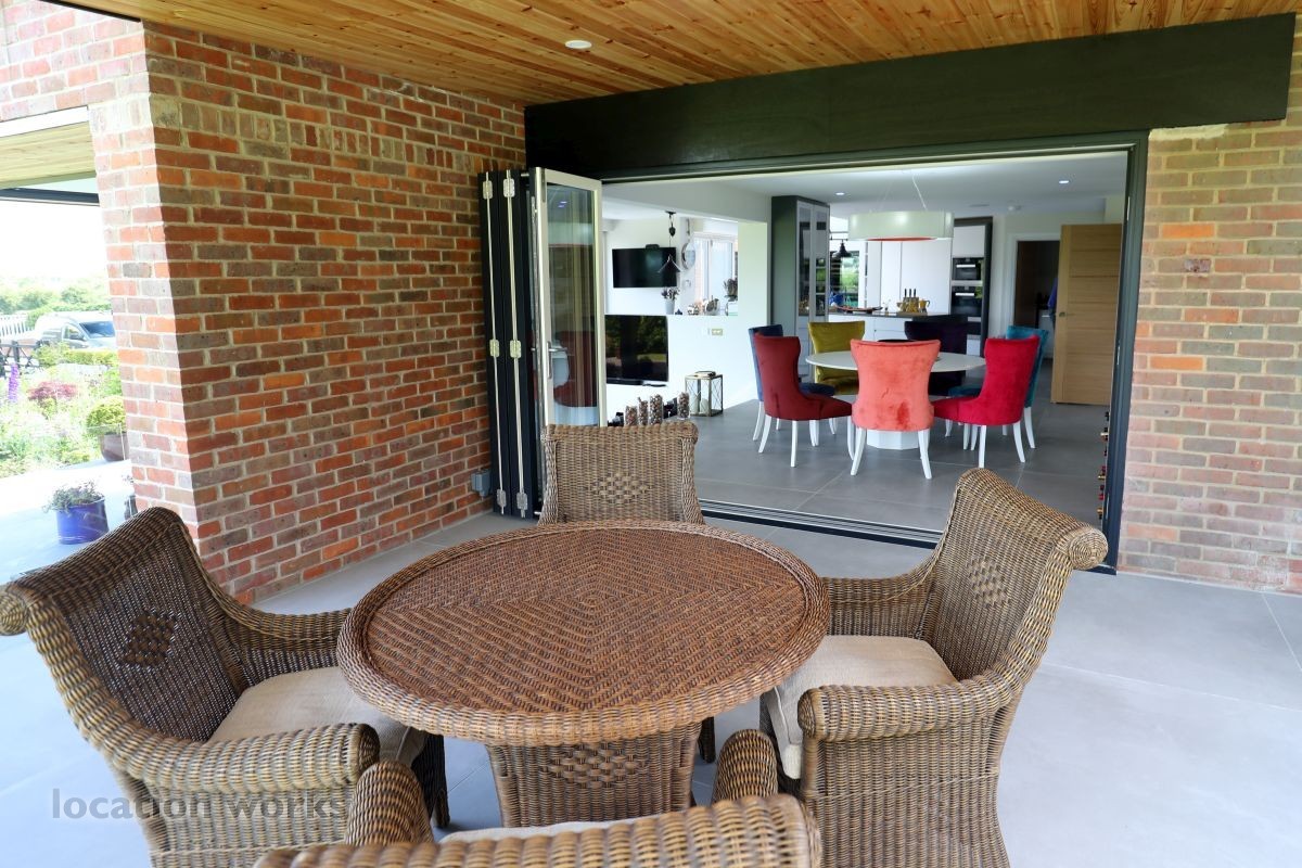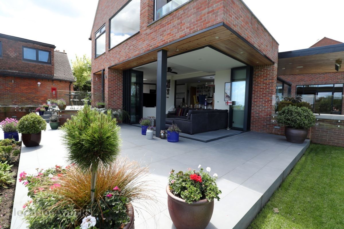 Large split level detached home, with bi-folding doors, backing onto open fields. Buckinghamshire.