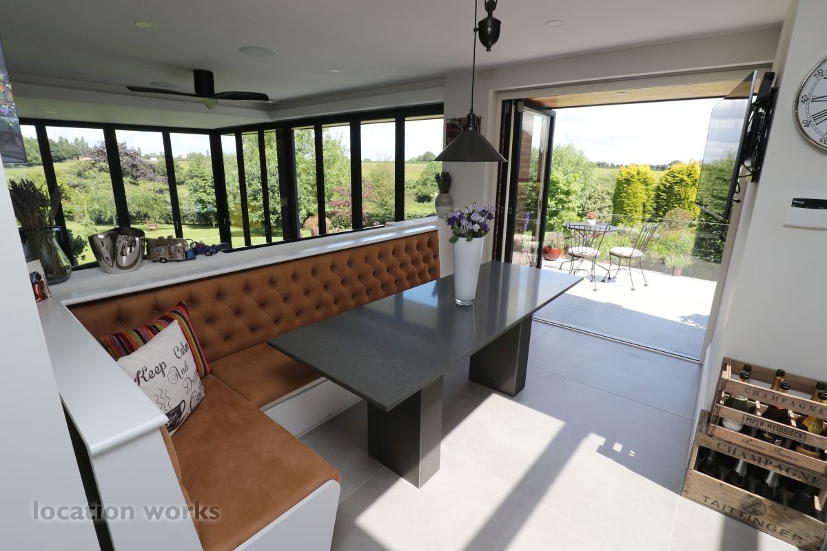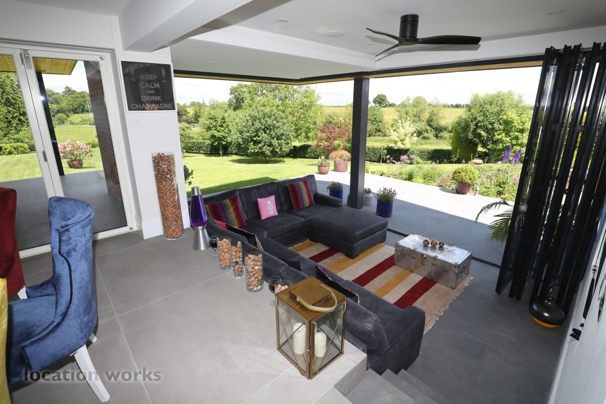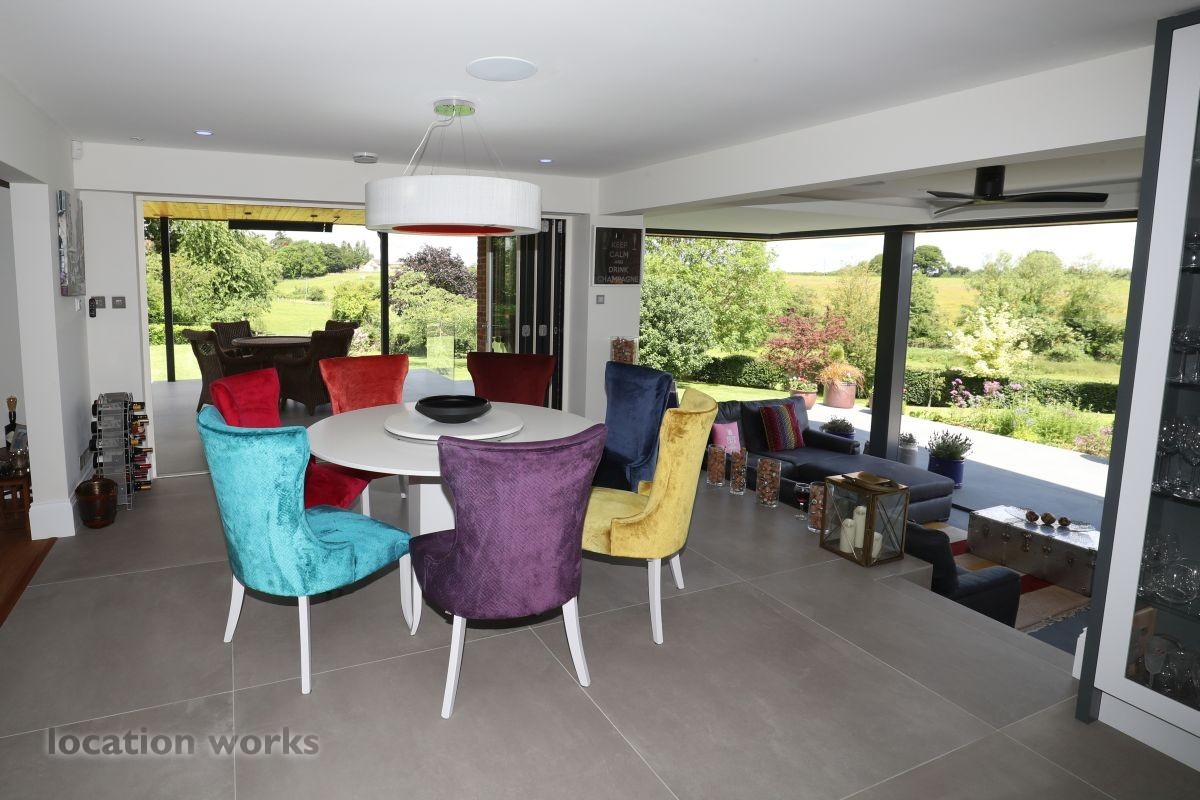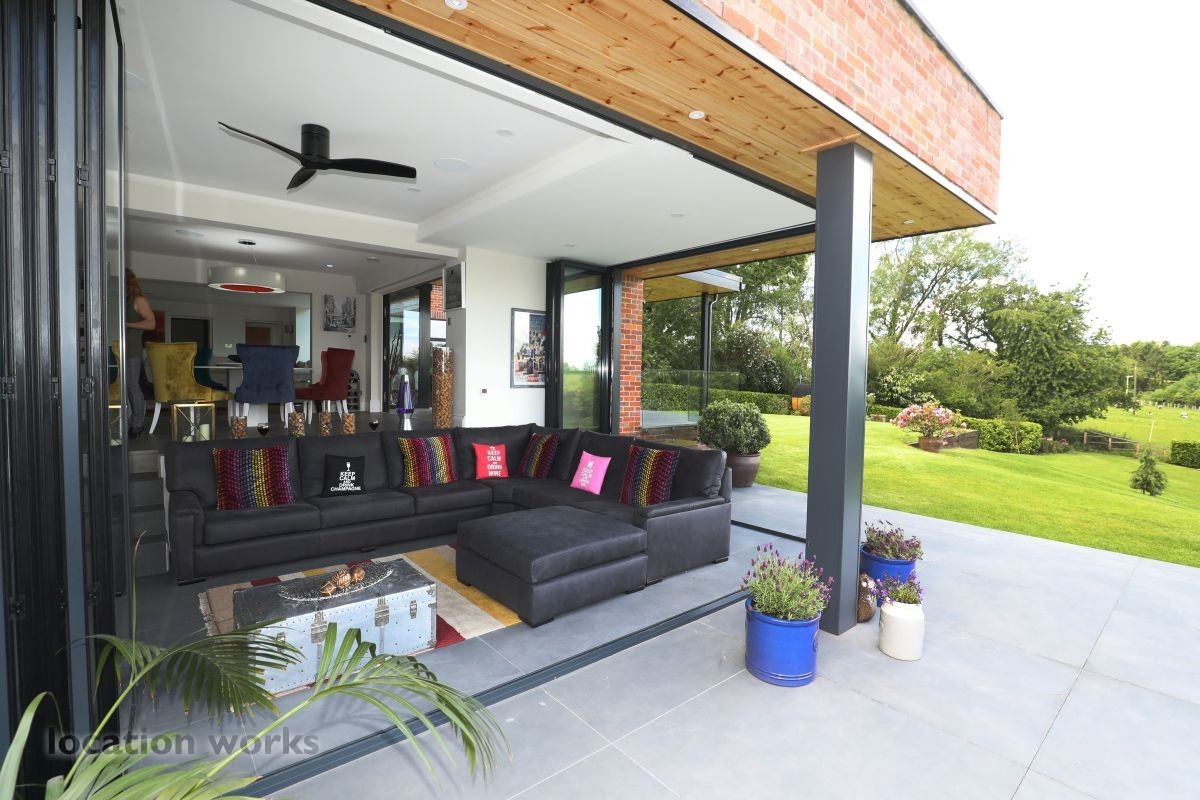 Large split level detached home, with bi-folding doors, backing onto open fields. Buckinghamshire.