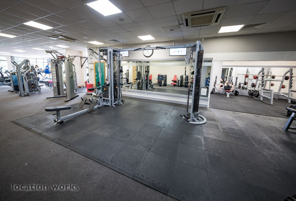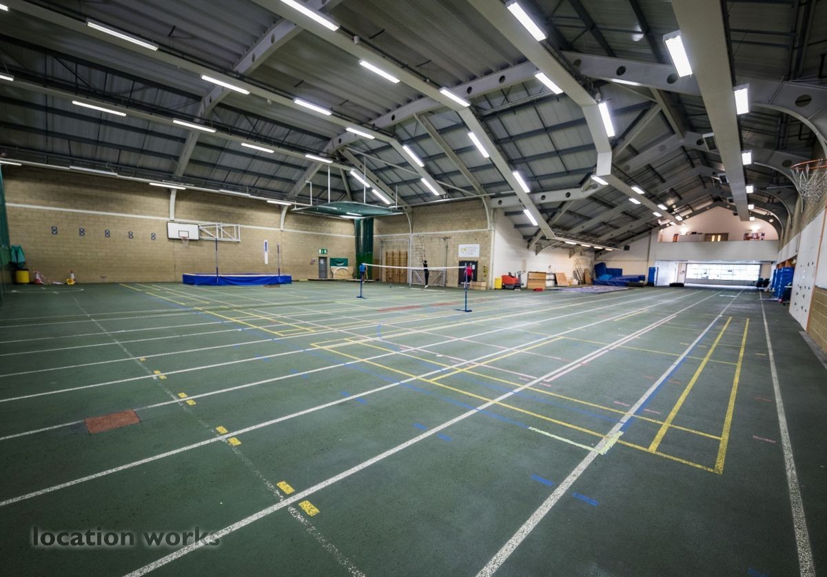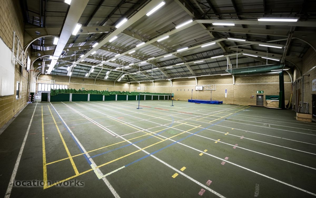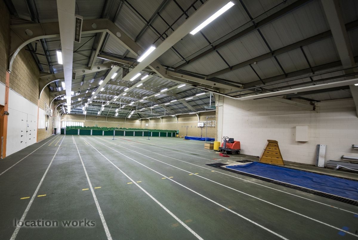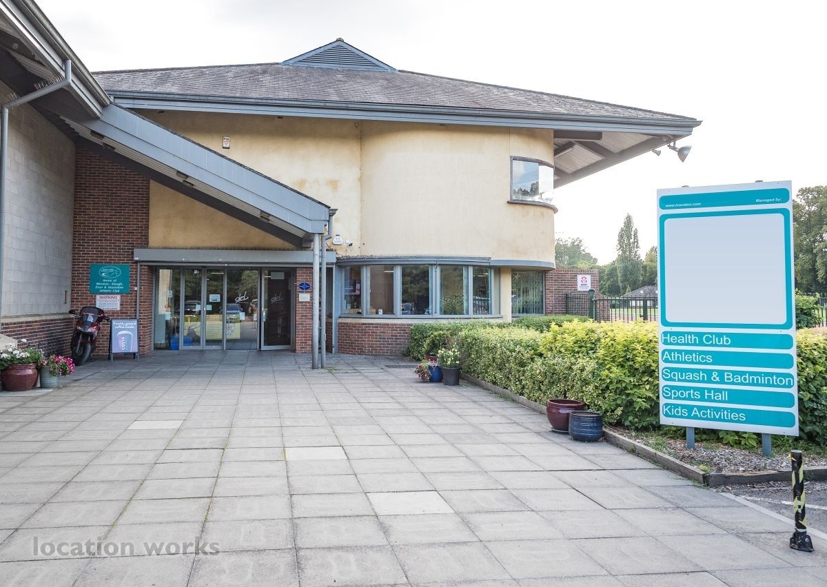 | Modern sports facility with outdoor and indoor running tracks, sports hall with weights, and squash courts. Berkshire.