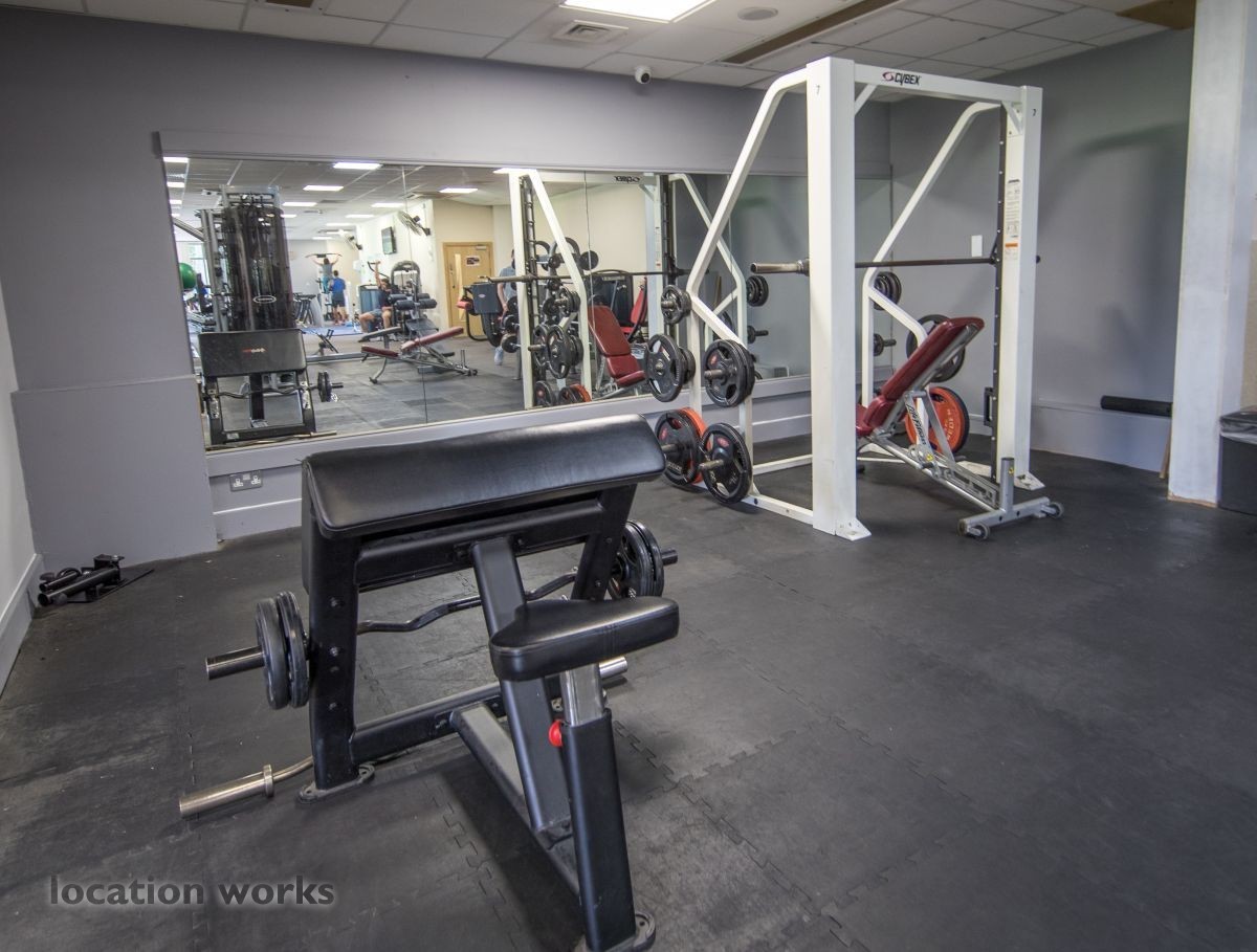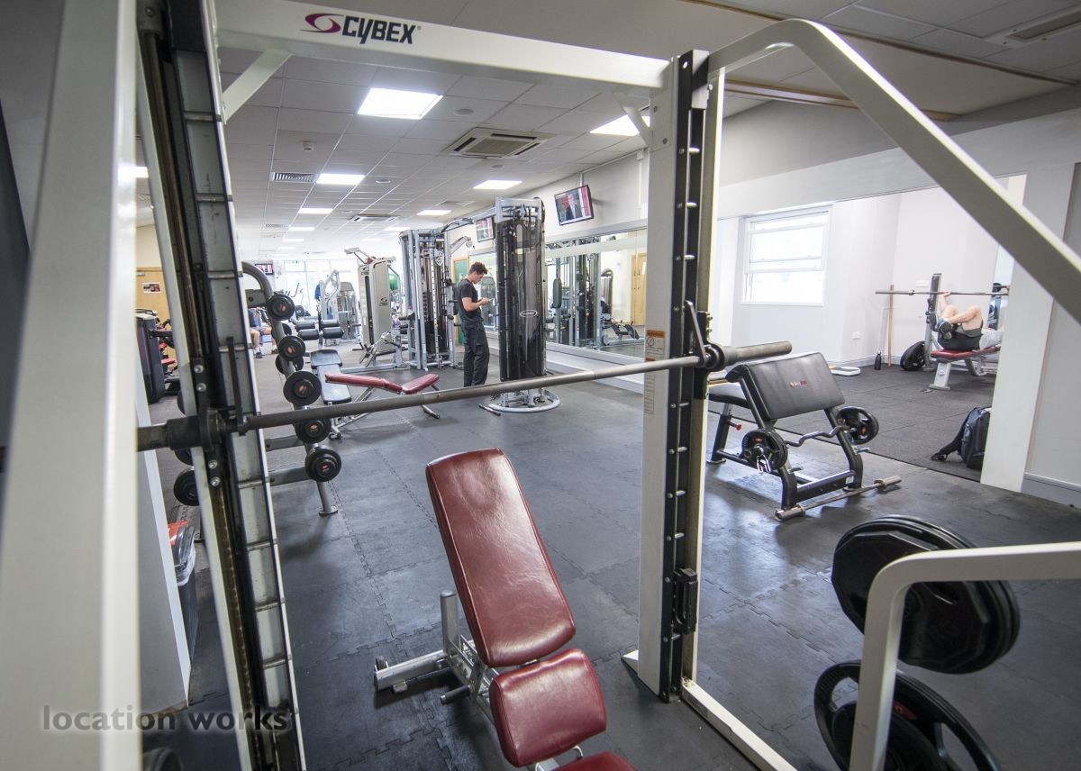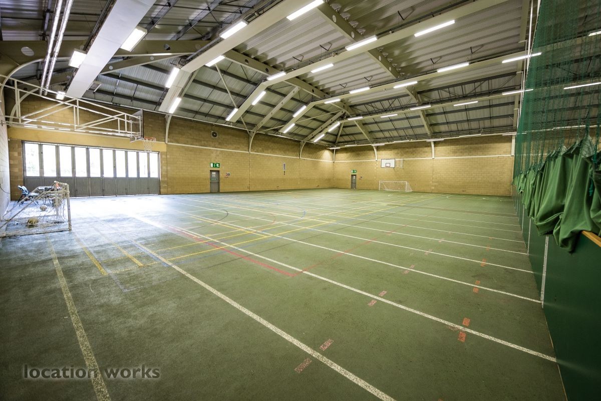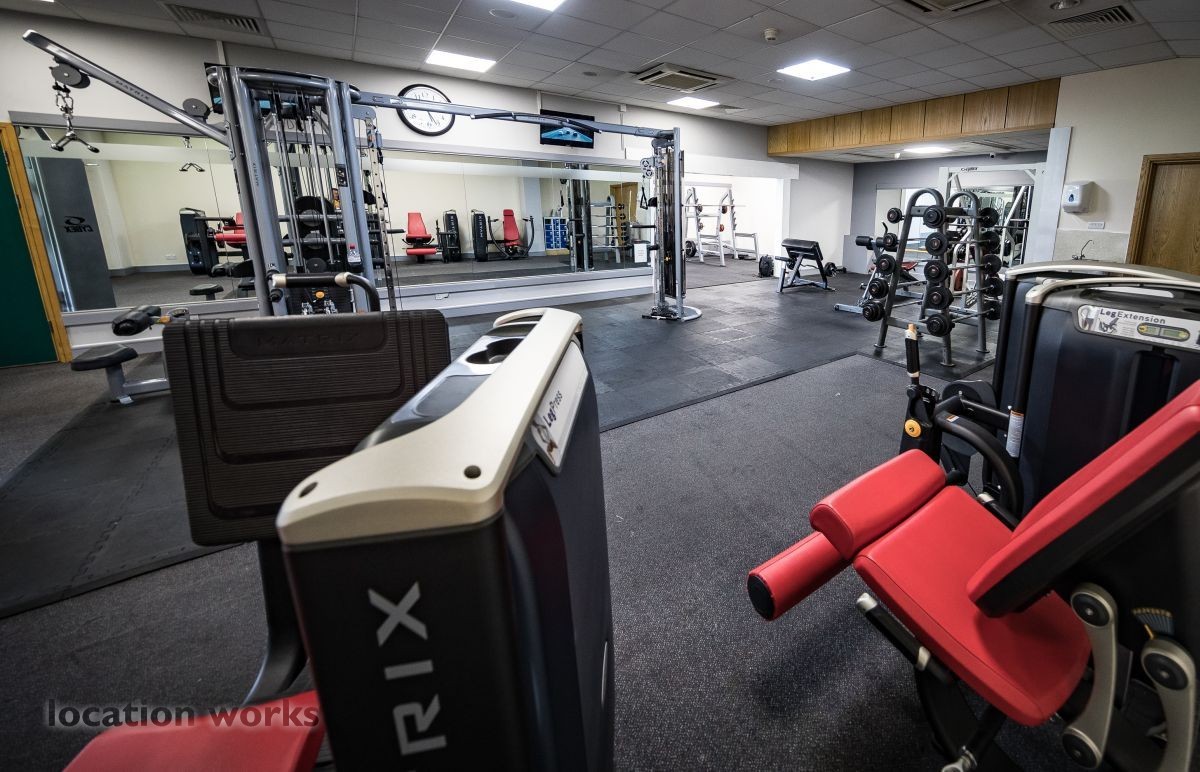 | Modern sports facility with outdoor and indoor running tracks, sports hall with weights, and squash courts. Berkshire.