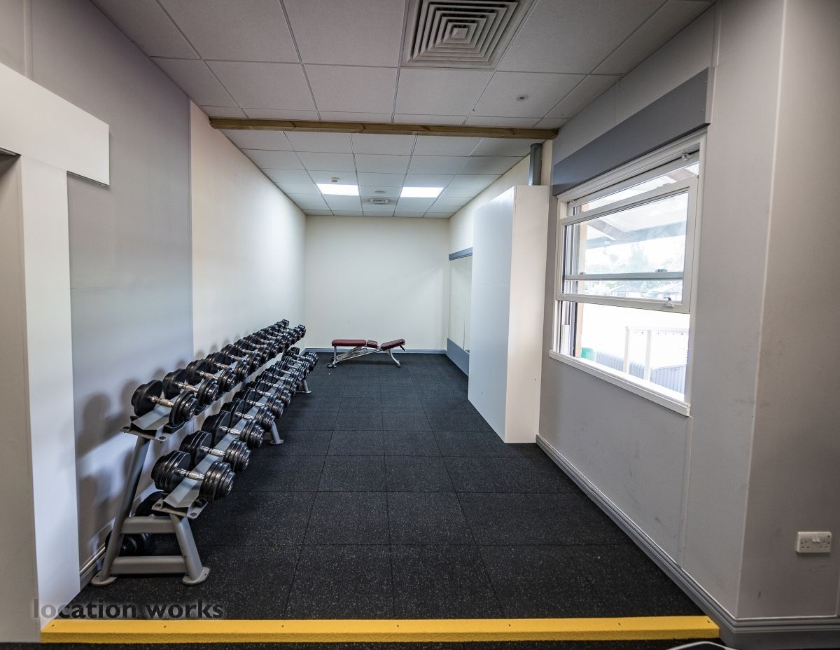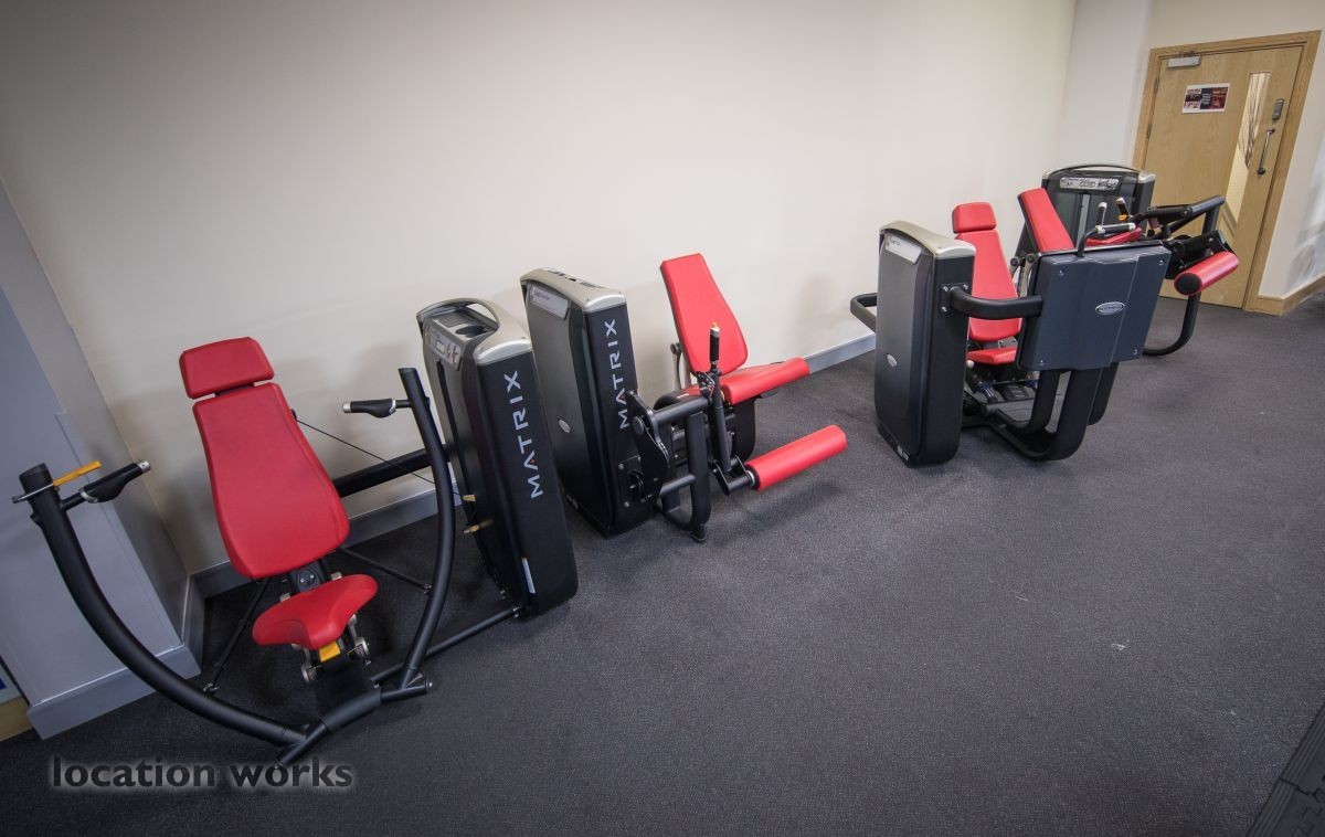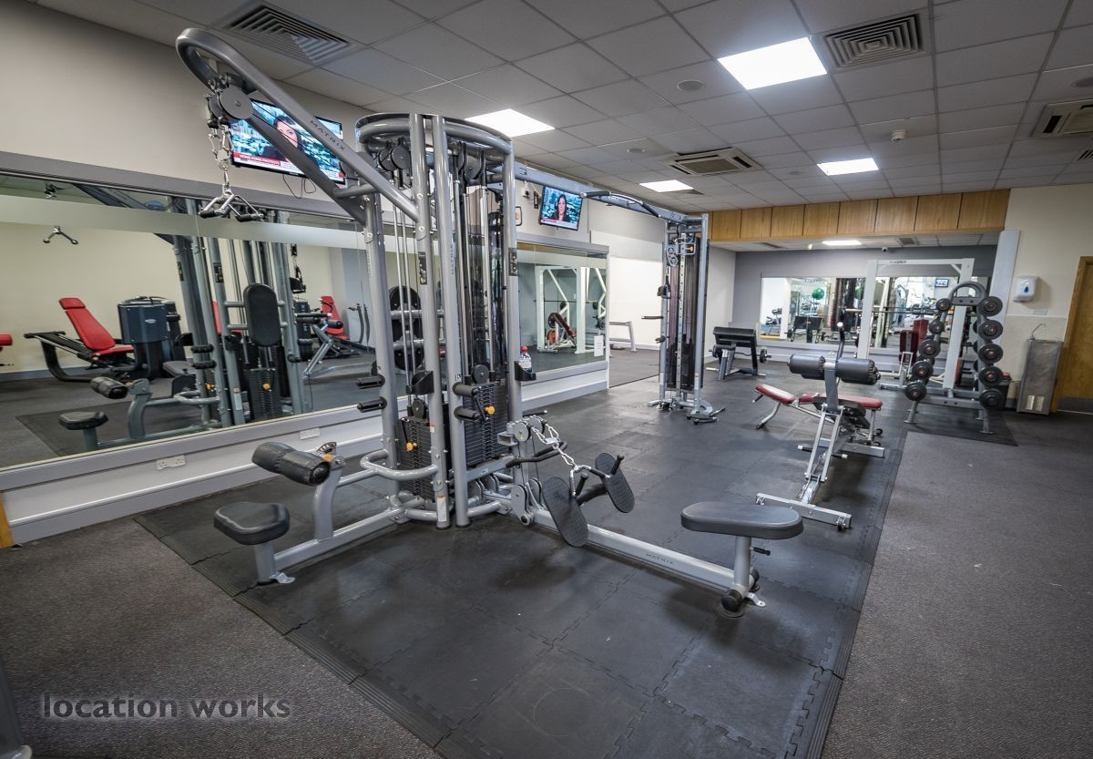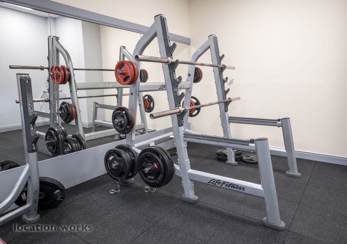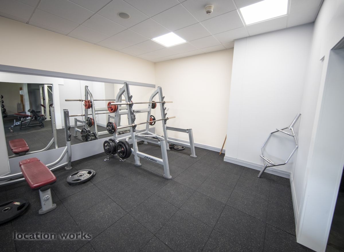 | Modern sports facility with outdoor and indoor running tracks, sports hall with weights, and squash courts. Berkshire.