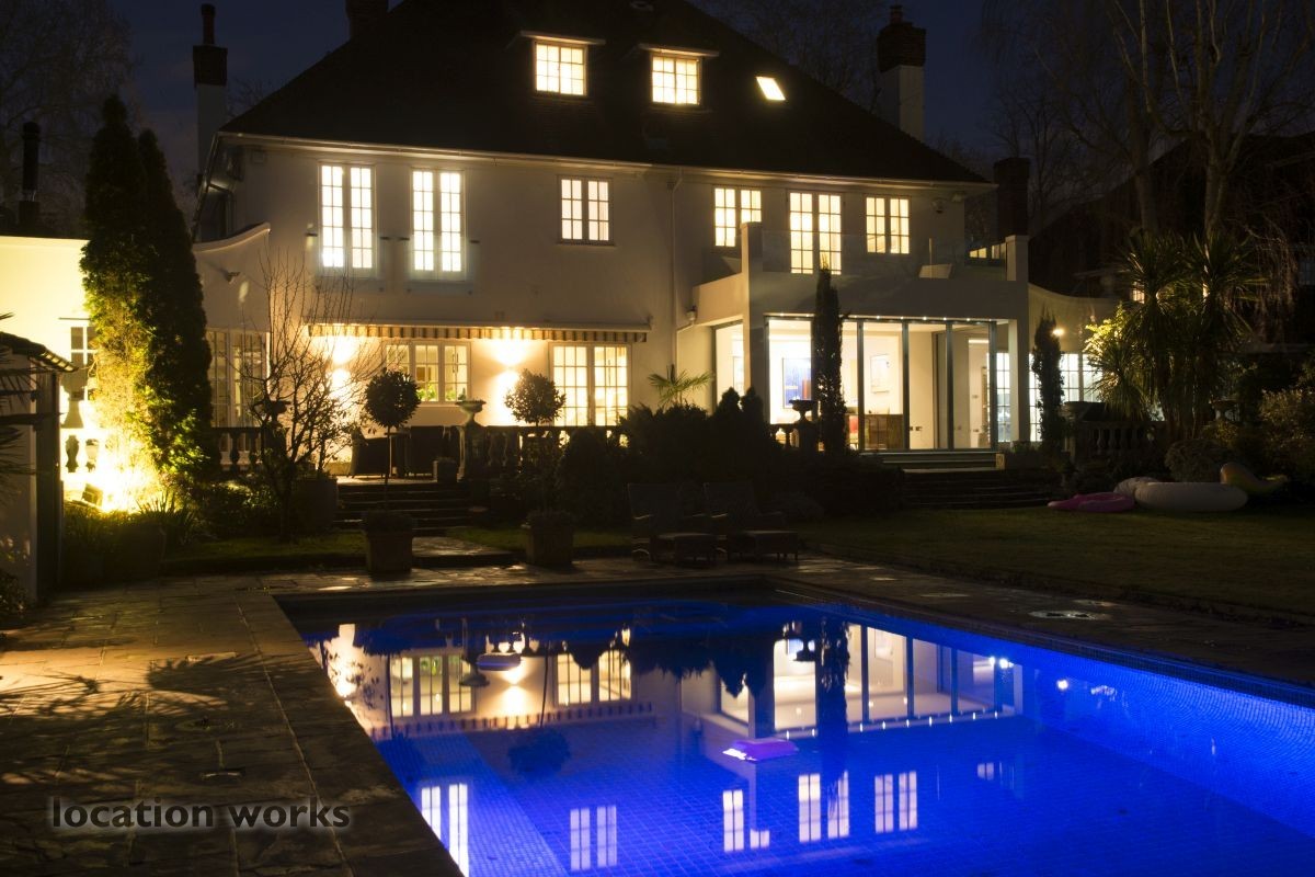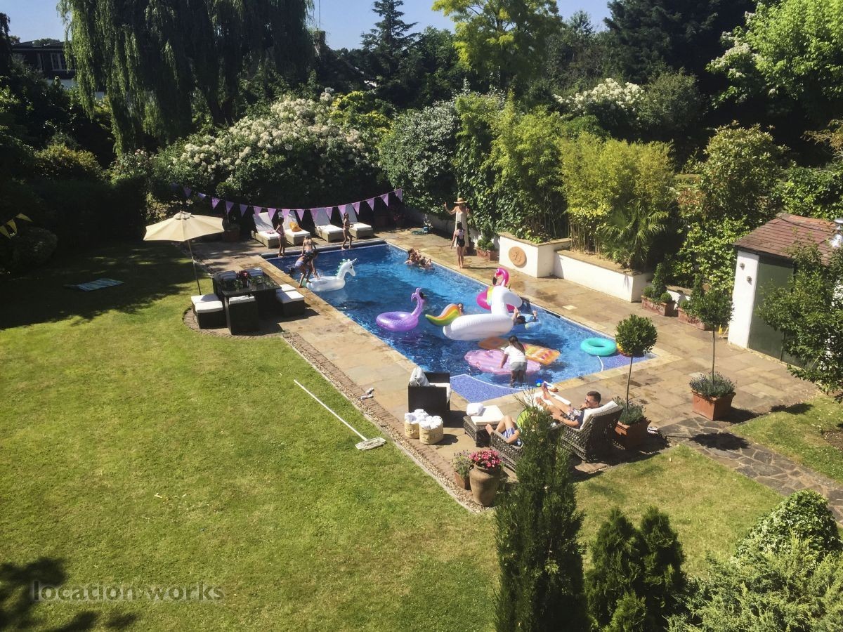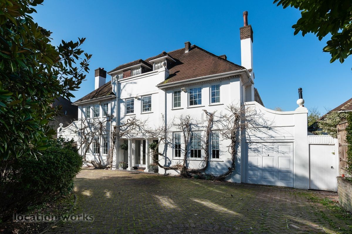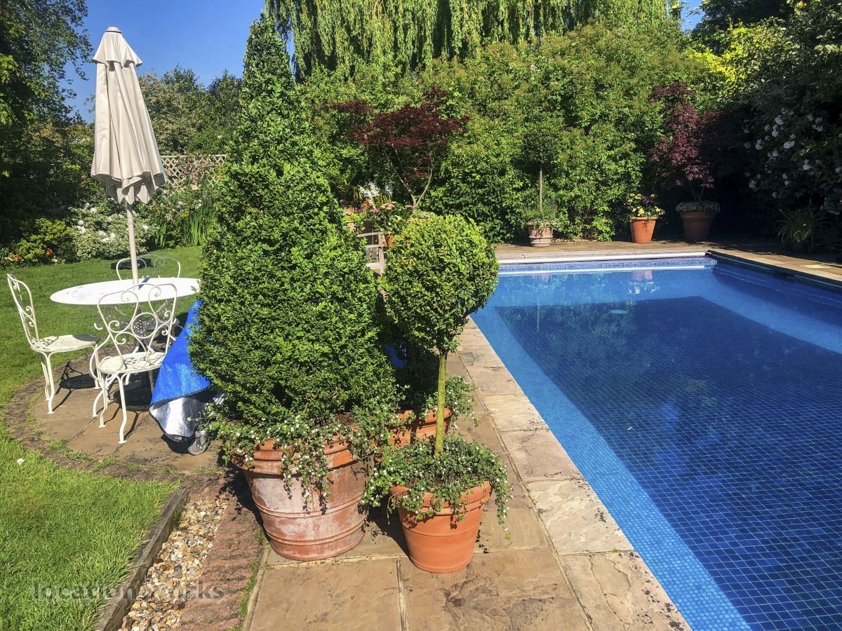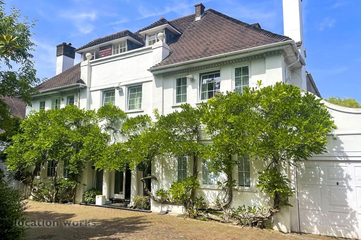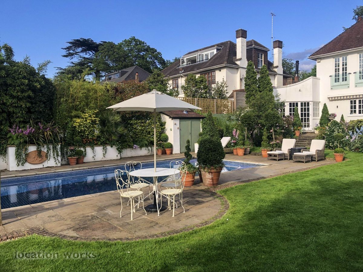 French style art deco lodge house, with outdoor swimming pool. South west London.