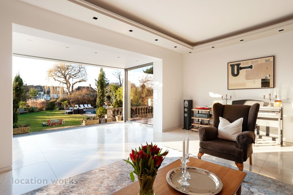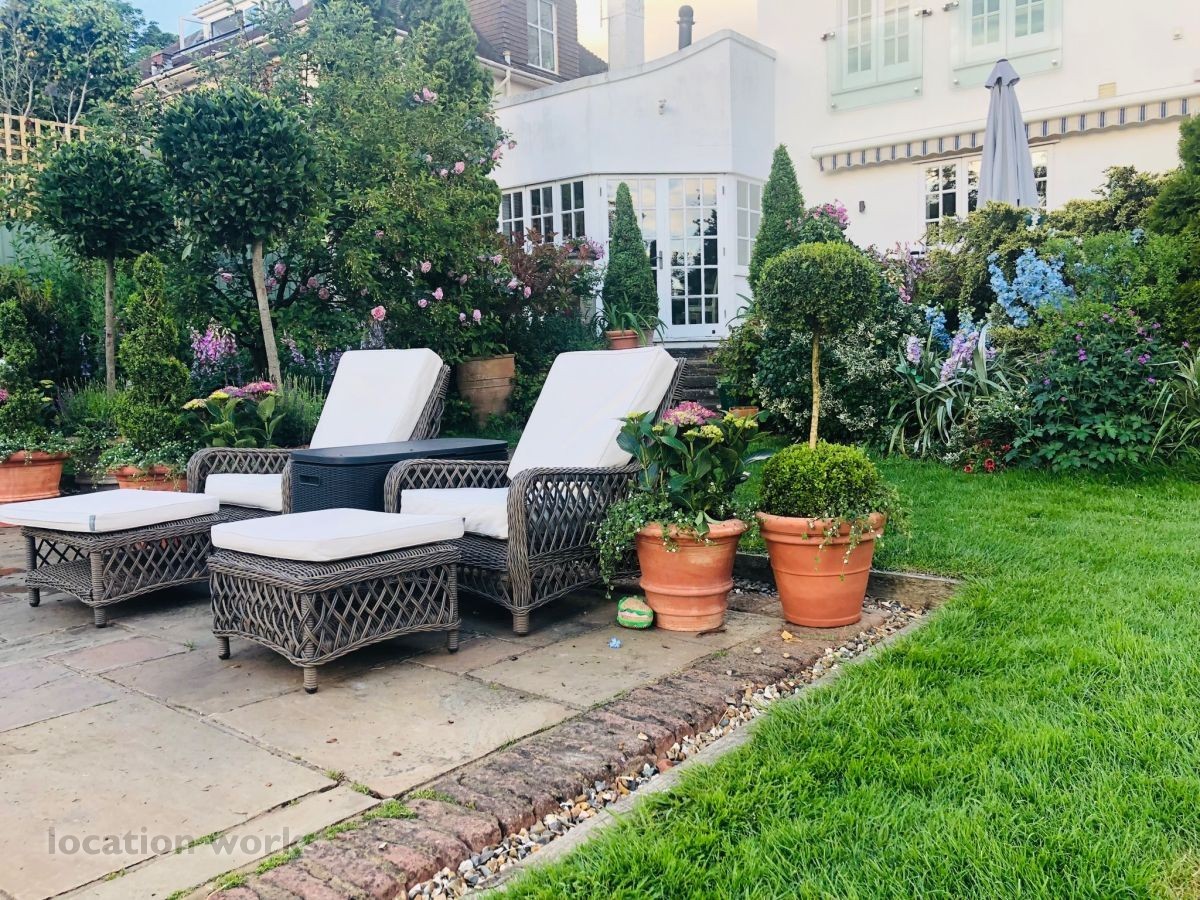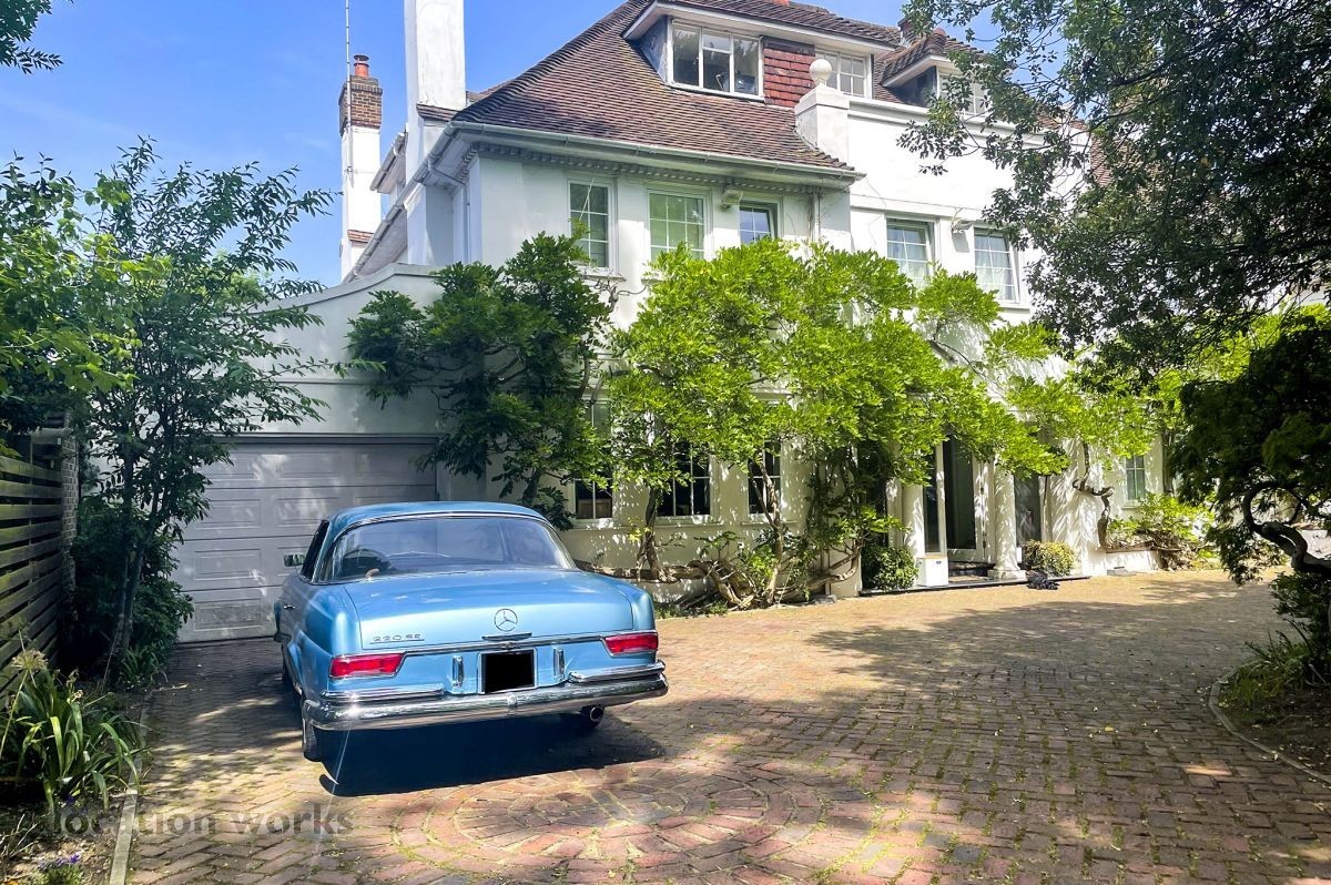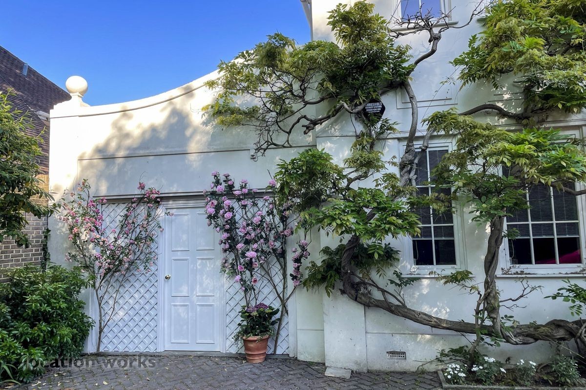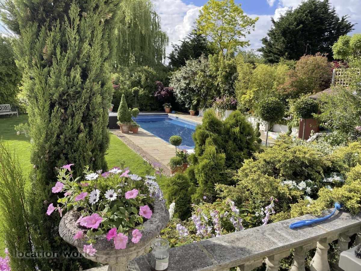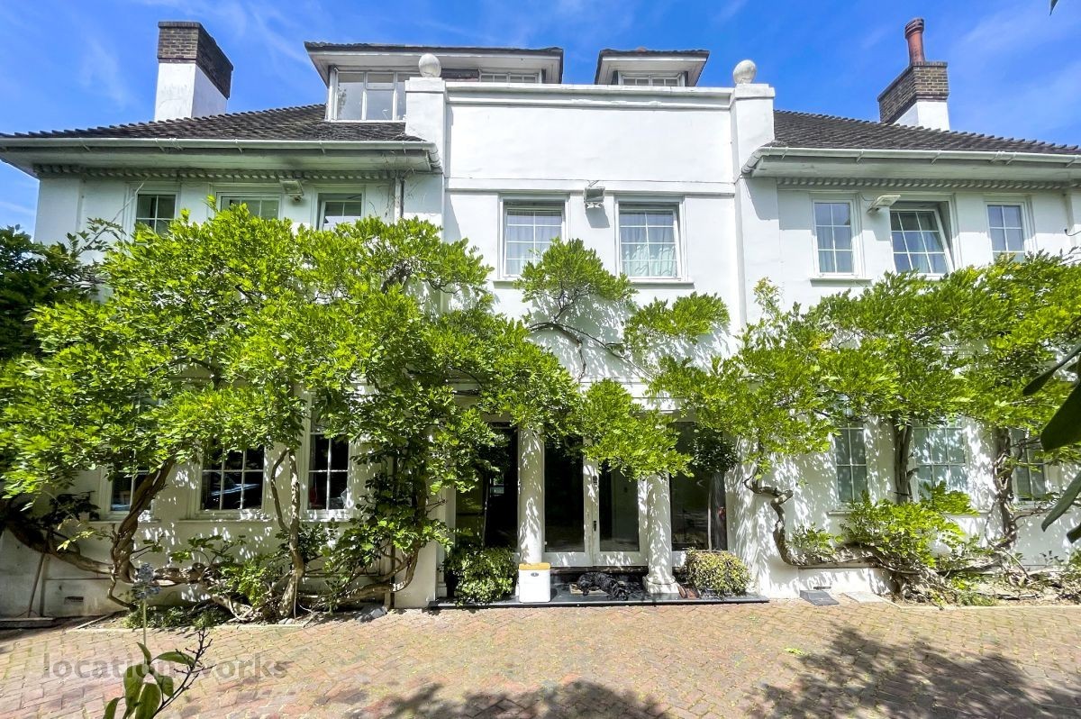 French style art deco lodge house, with outdoor swimming pool. South west London.