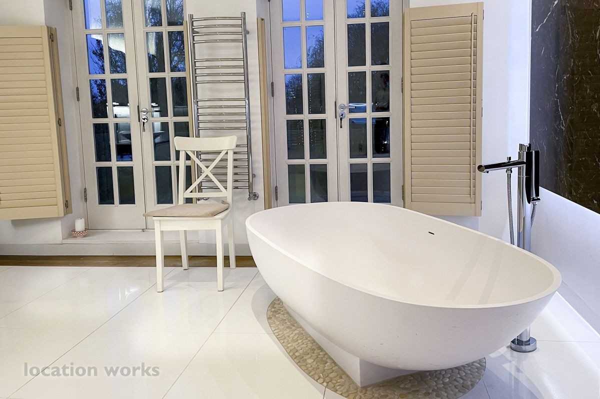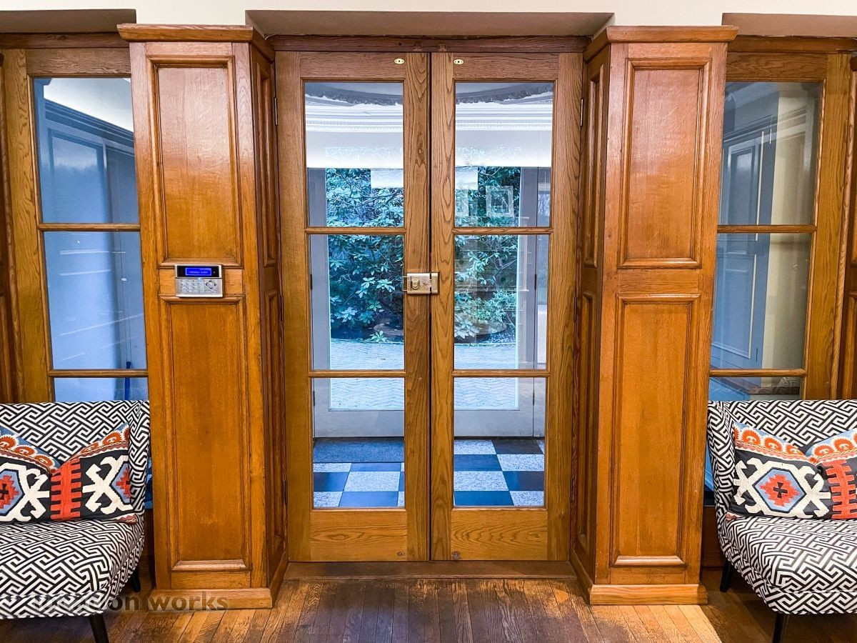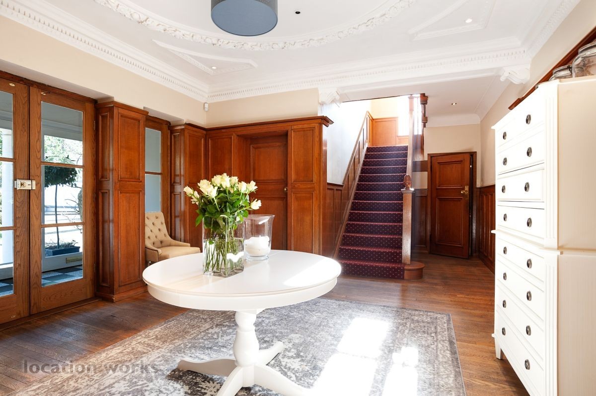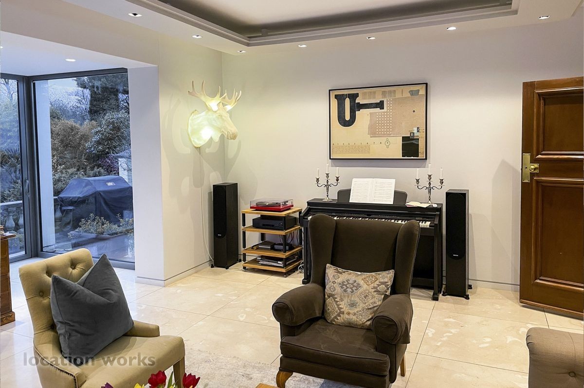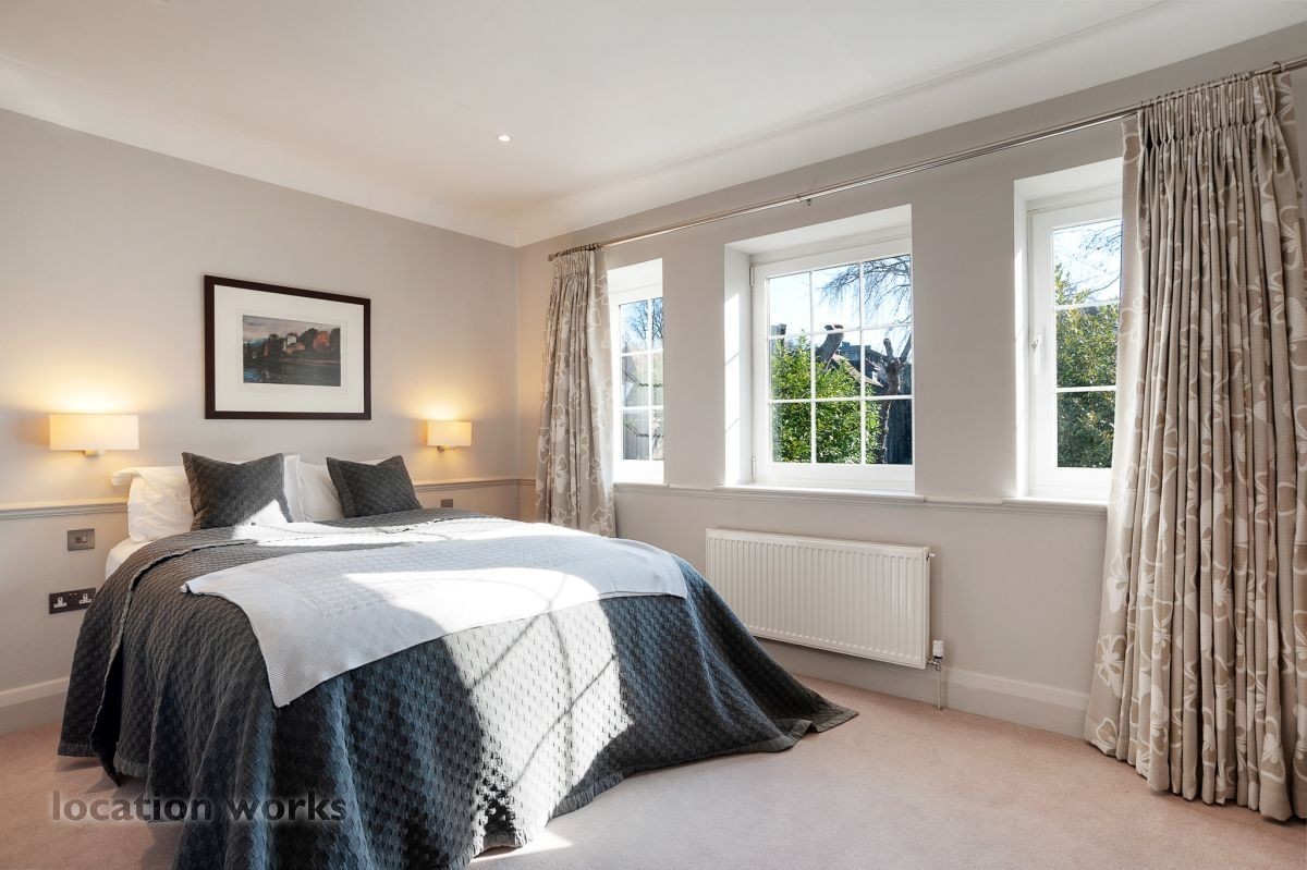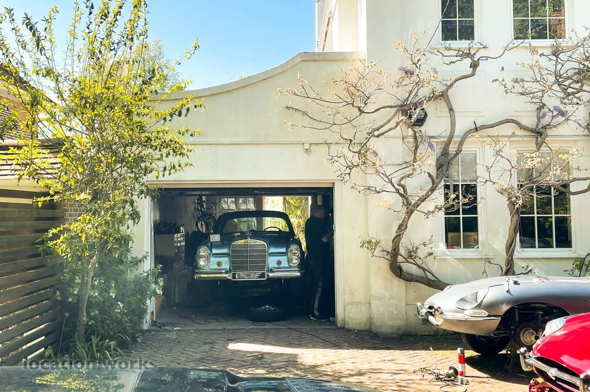 French style art deco lodge house, with outdoor swimming pool. South west London.