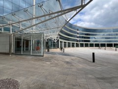 This prestigious HQ building in west London is a very large office block in its own grounds, with multiple office spaces around a large atrium. The building has many office spaces, some empty, and surface car parks, underground car parks.