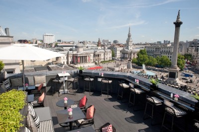 Rooftop bar overlooking Trafalgar Square, central London.