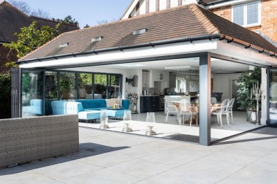 Large modern property, with open plan kitchen, exterior swimming pool with terrace and an outdoor bar. Surrey. (updated listing 2026)