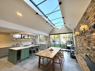 Modern farmhouse, with glass open plan living space. Hertfordshire.