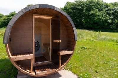 210 miles (338km) from London Restored farm buildings, open land, sauna, swimming pond. Wales. (new location 2026) |