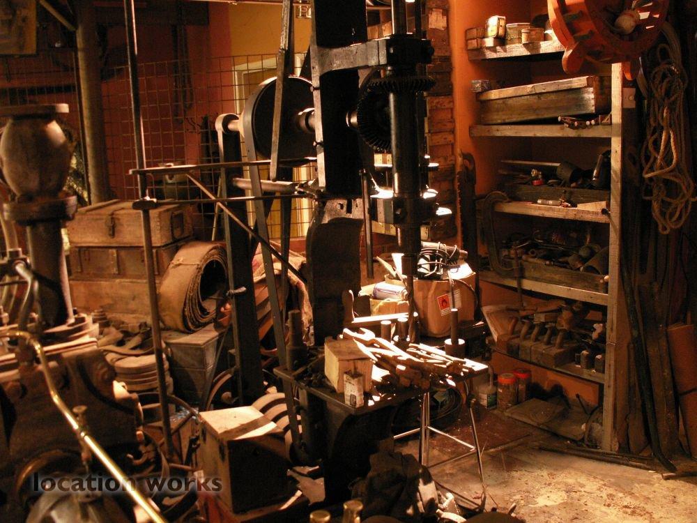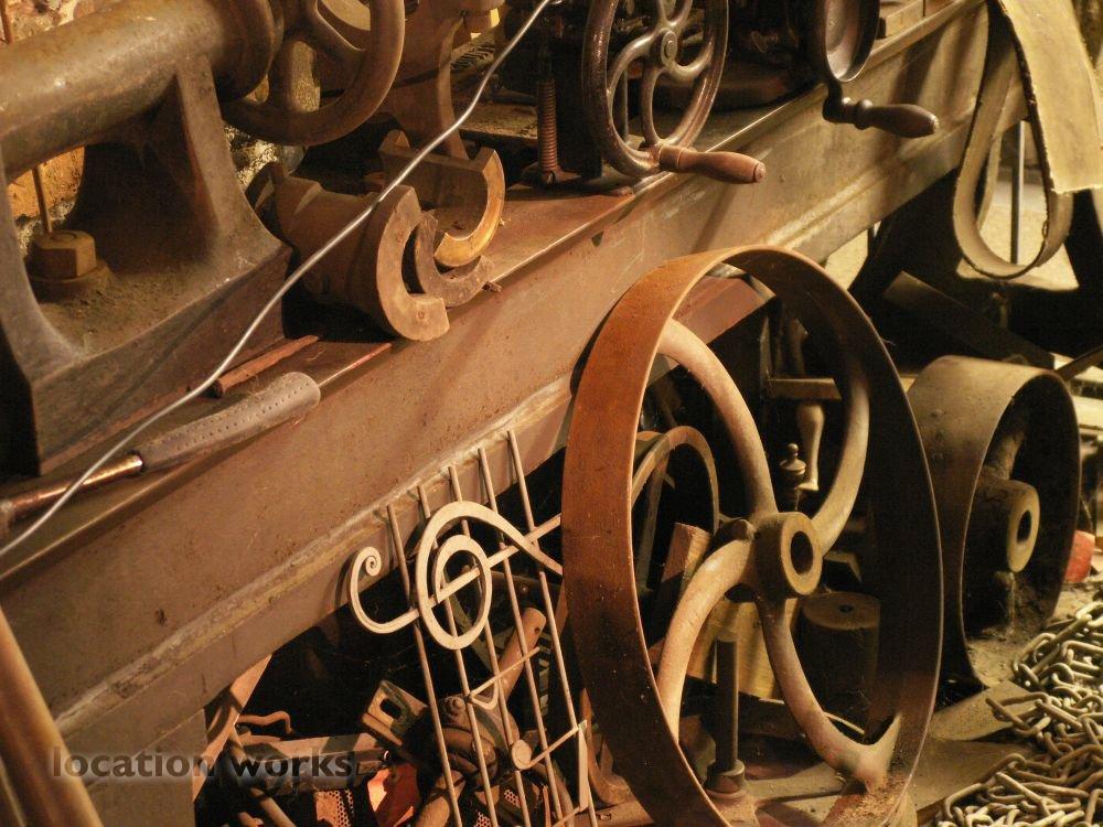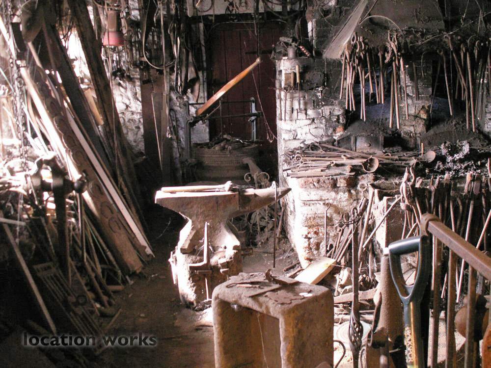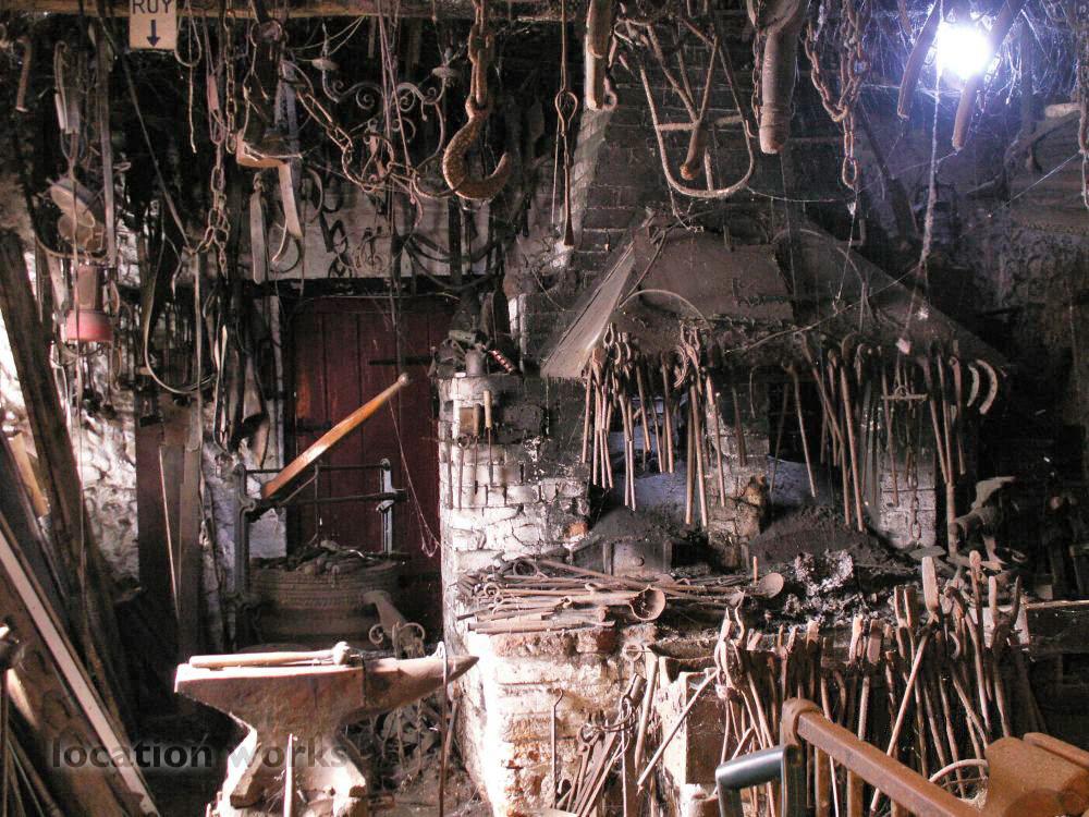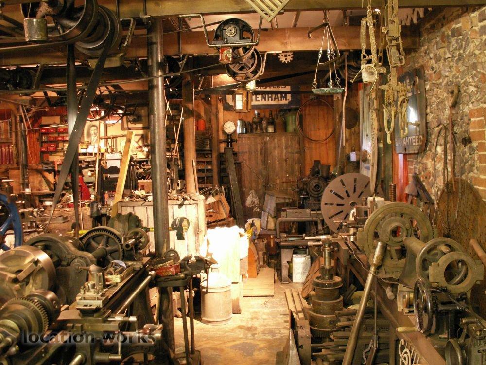 | Working blacksmith's forge with hundreds of original tools, alongside a functioning victorian lineshaft engineering workshop, magnificently atmospheric and photogenic. Norfolk.
