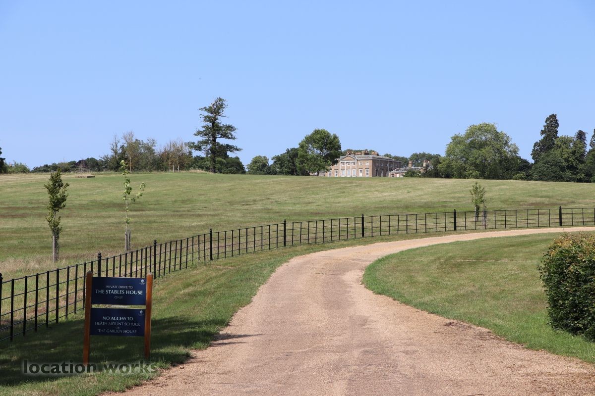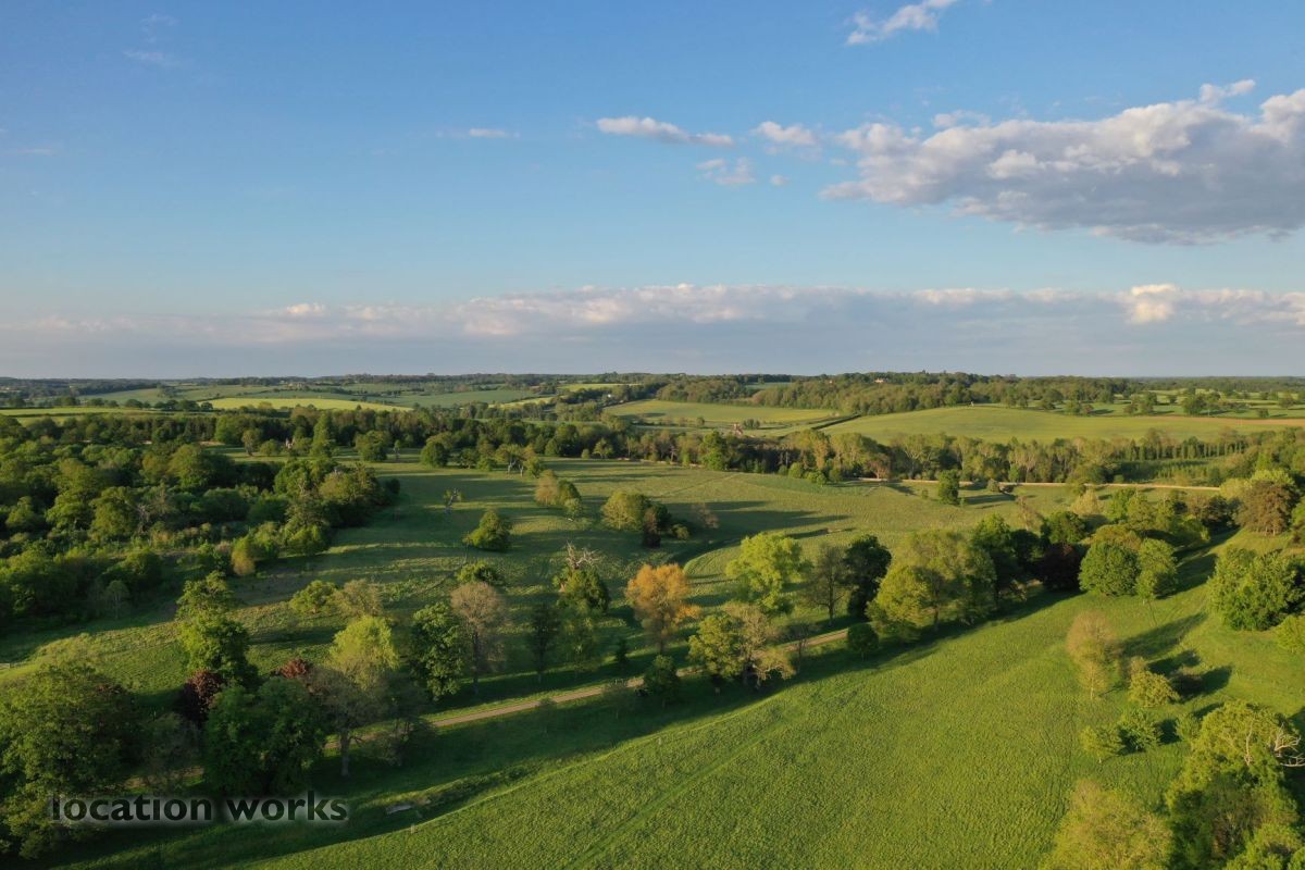 | Expansive 18th century varied parkland and a large private lake. The estate includes private roads and tracks, woodland, fields, footpaths, nature reserves, gatehouses, cottages, and farm buildings, both working and derelict. The main estate mansion provides an impressive backdrop. Hertfordshire.