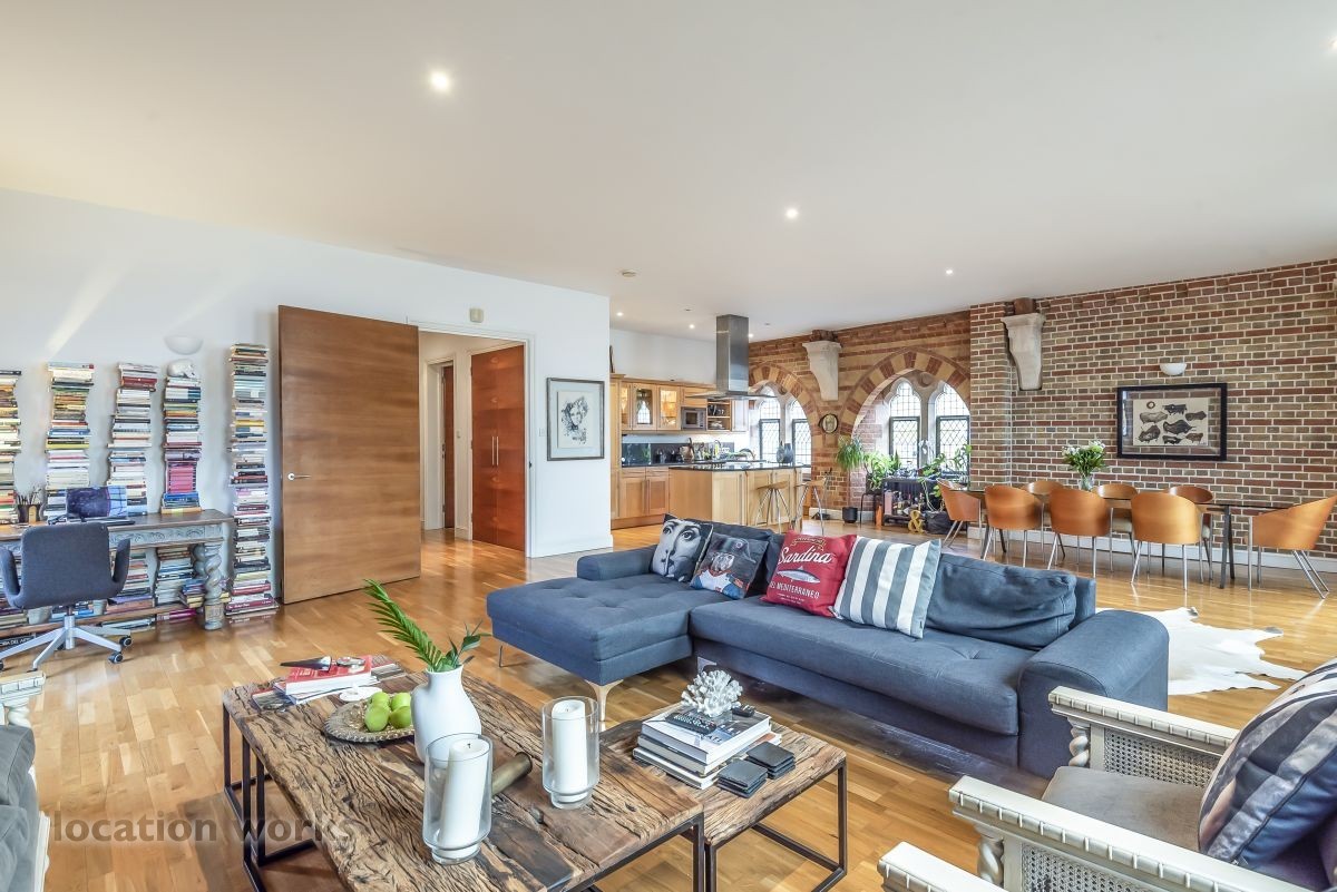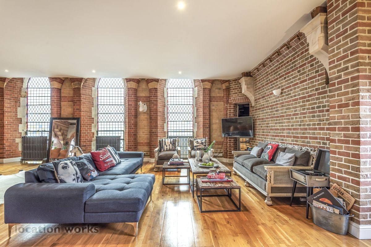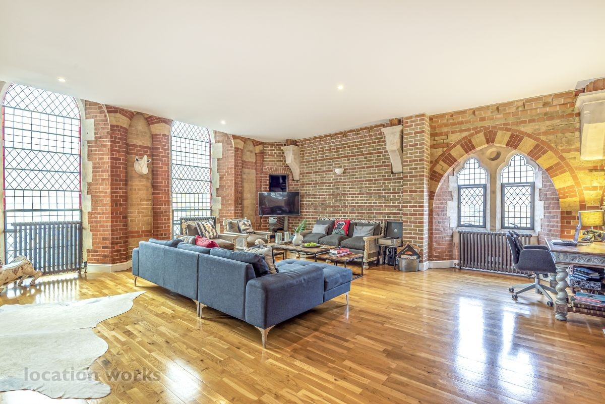 North London Unusual apartment in a converted church; large open plan rooms with gothic-style windows. listed in...