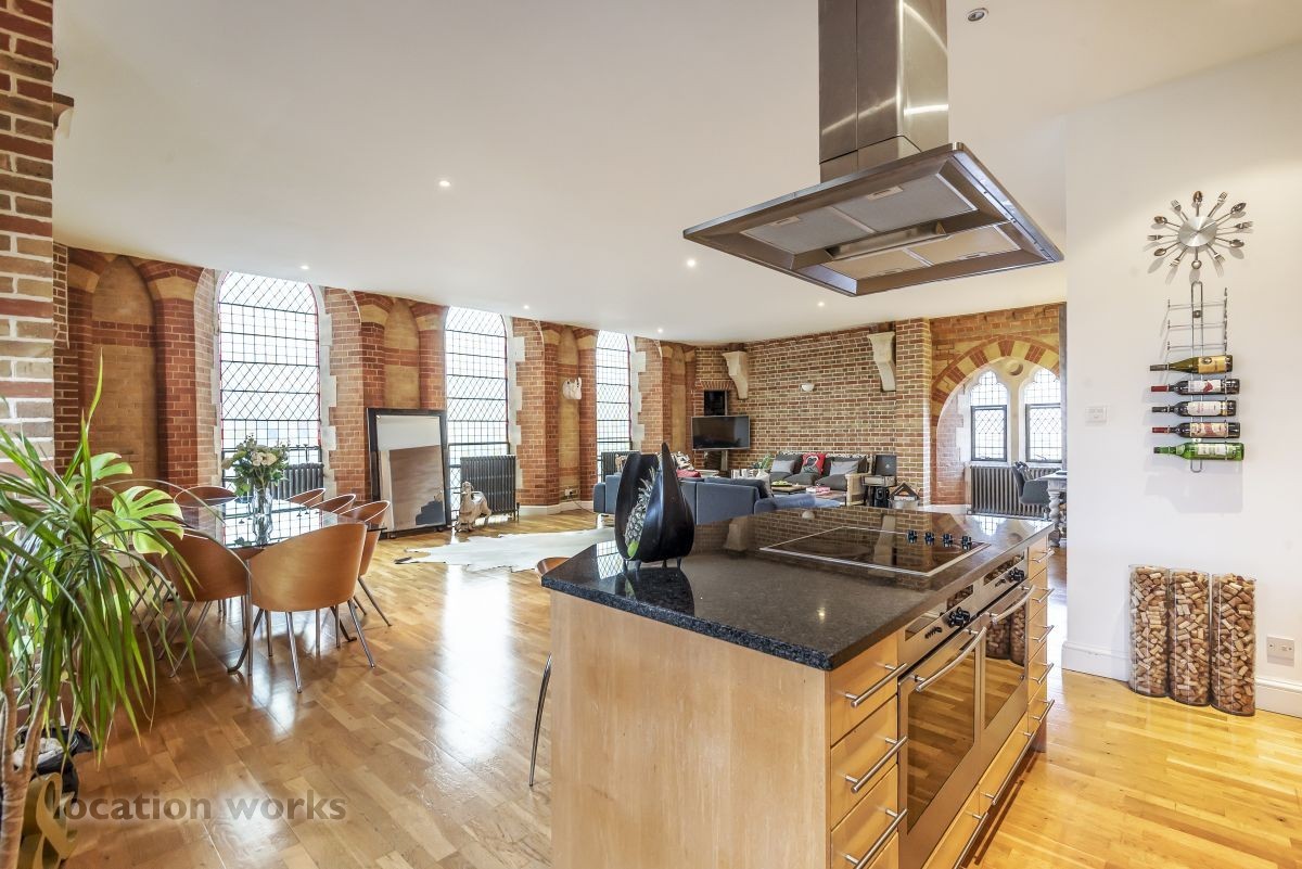 listed in: apartments & flats :: converted churches :: kitchens :: kitchen islands :: island hobs :: brick walls.