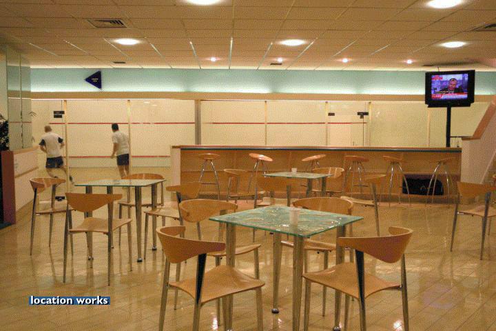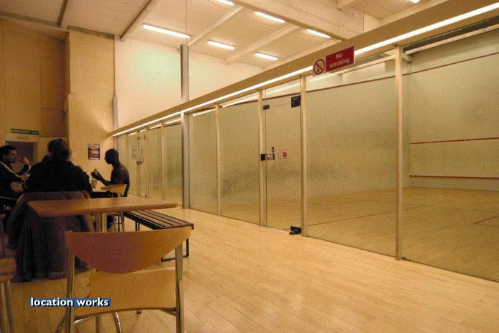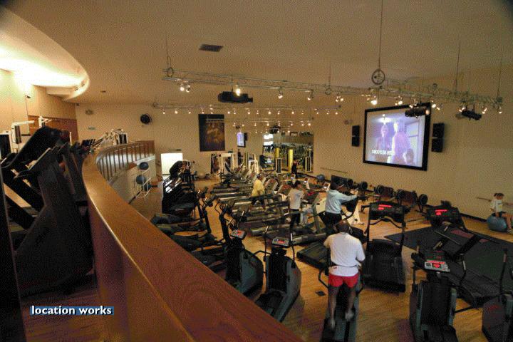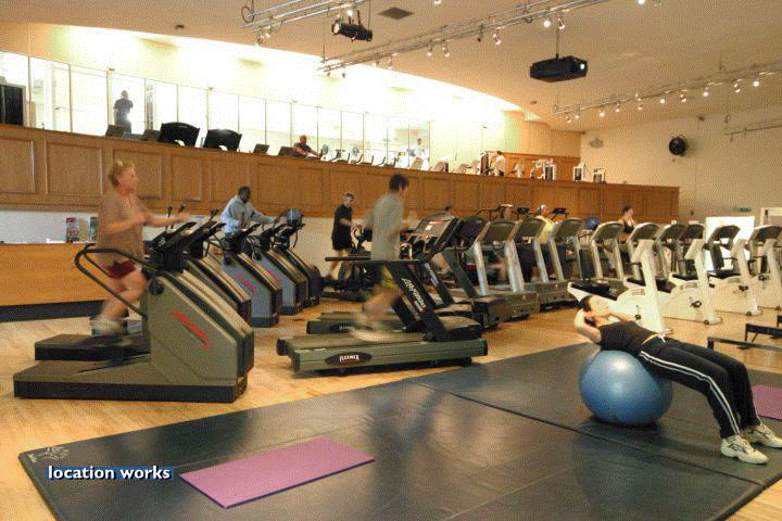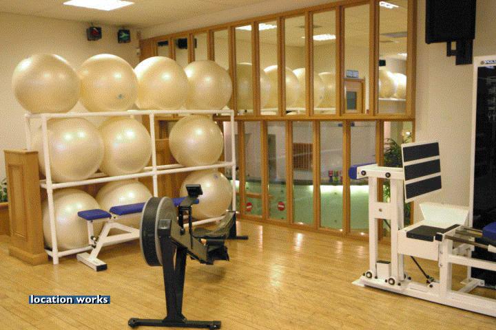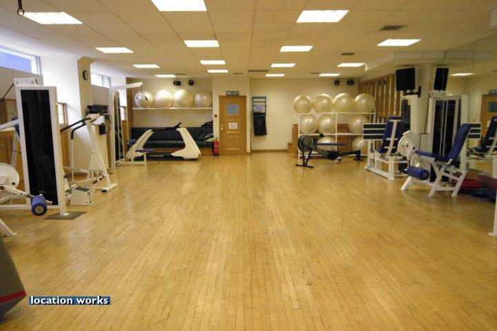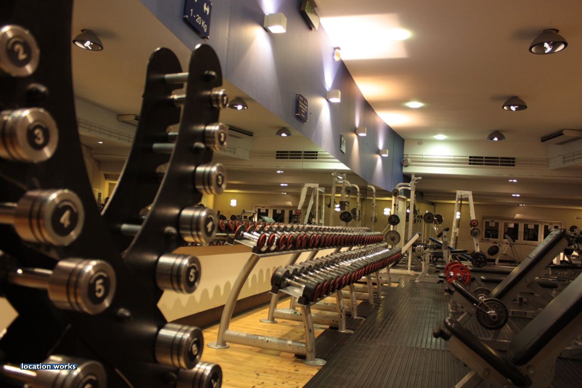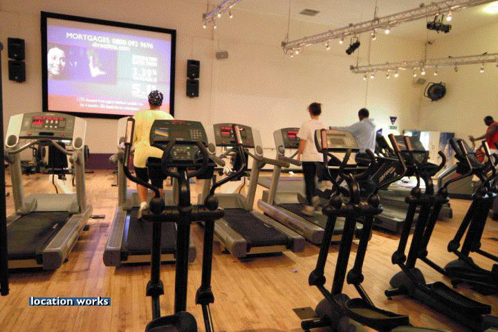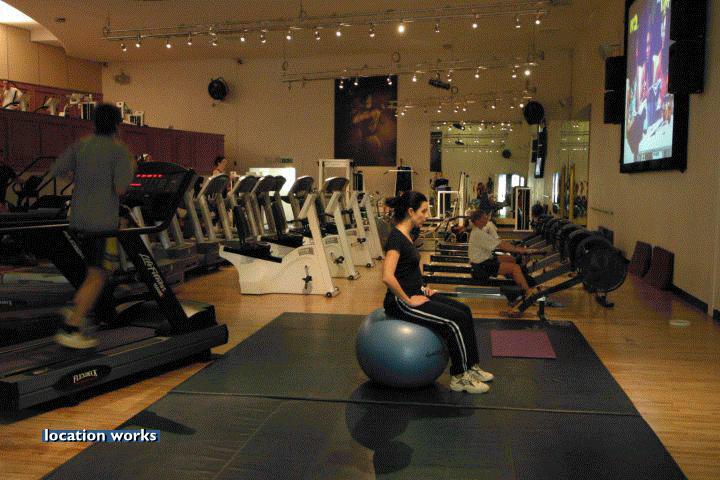 | Modern film-friendly gymnasium complex (in a converted cinema), including two large studio spaces, three sets of squash courts, and large gym space with cinema screen. South west London.