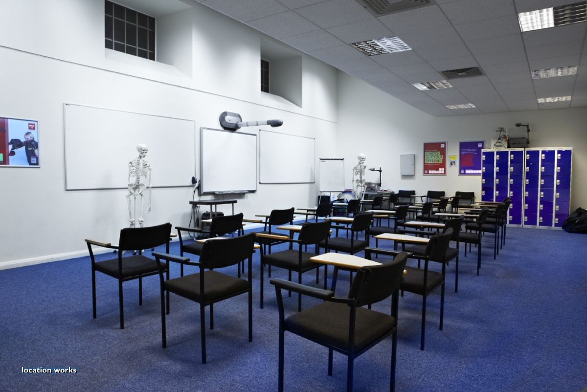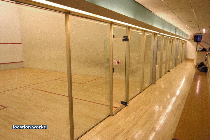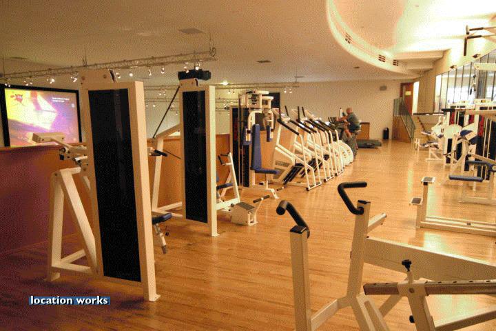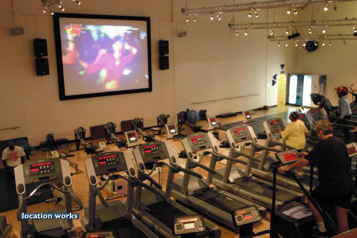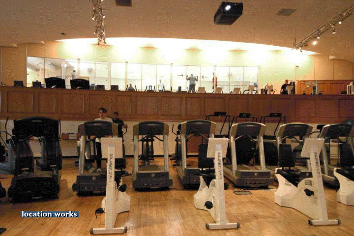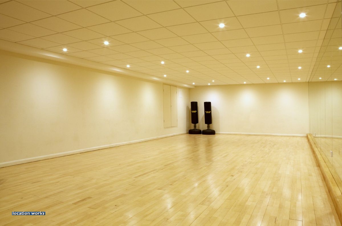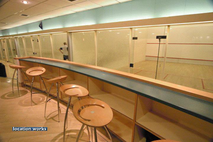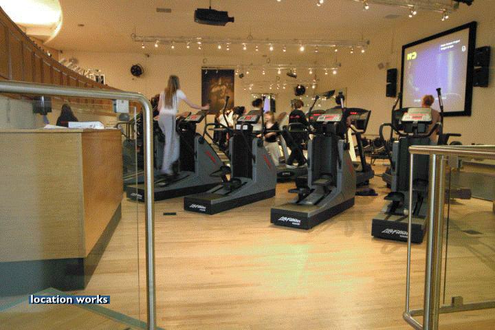 | Modern film-friendly gymnasium complex (in a converted cinema), including two large studio spaces, three sets of squash courts, and large gym space with cinema screen. South west London.