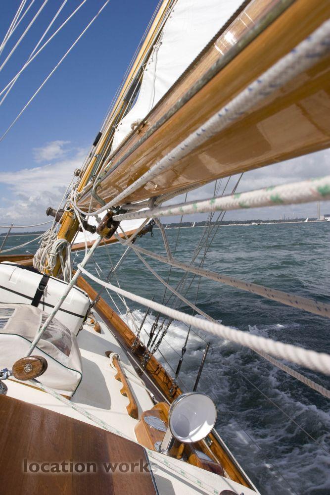 | Photogenic classic sailing yacht, with varnished woodwork and chromed fittings, based in Cowes, Isle of Wight