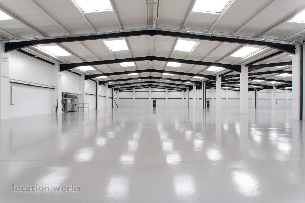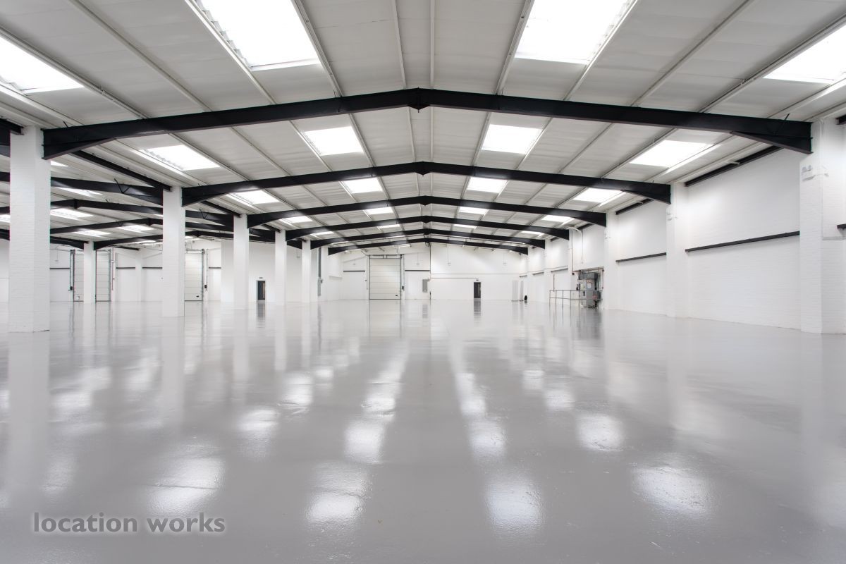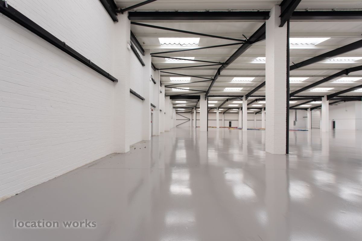 | Large empty warehouse, 4,400 sqm - 6m height to eaves - including two floors of offices and large car park, Long hire only. North west London.