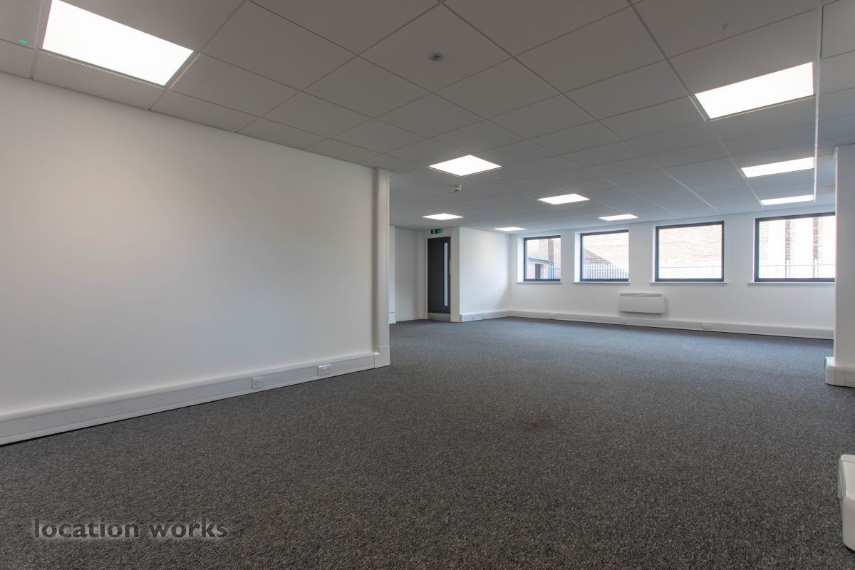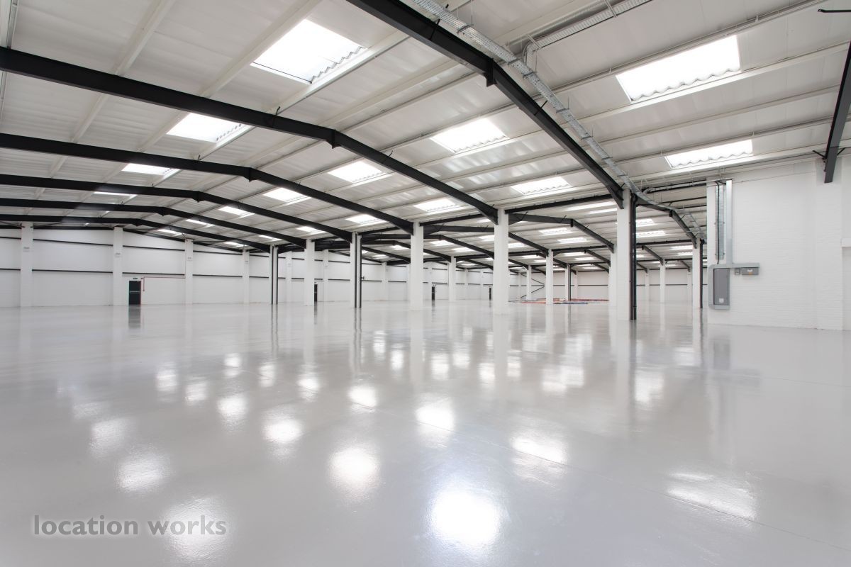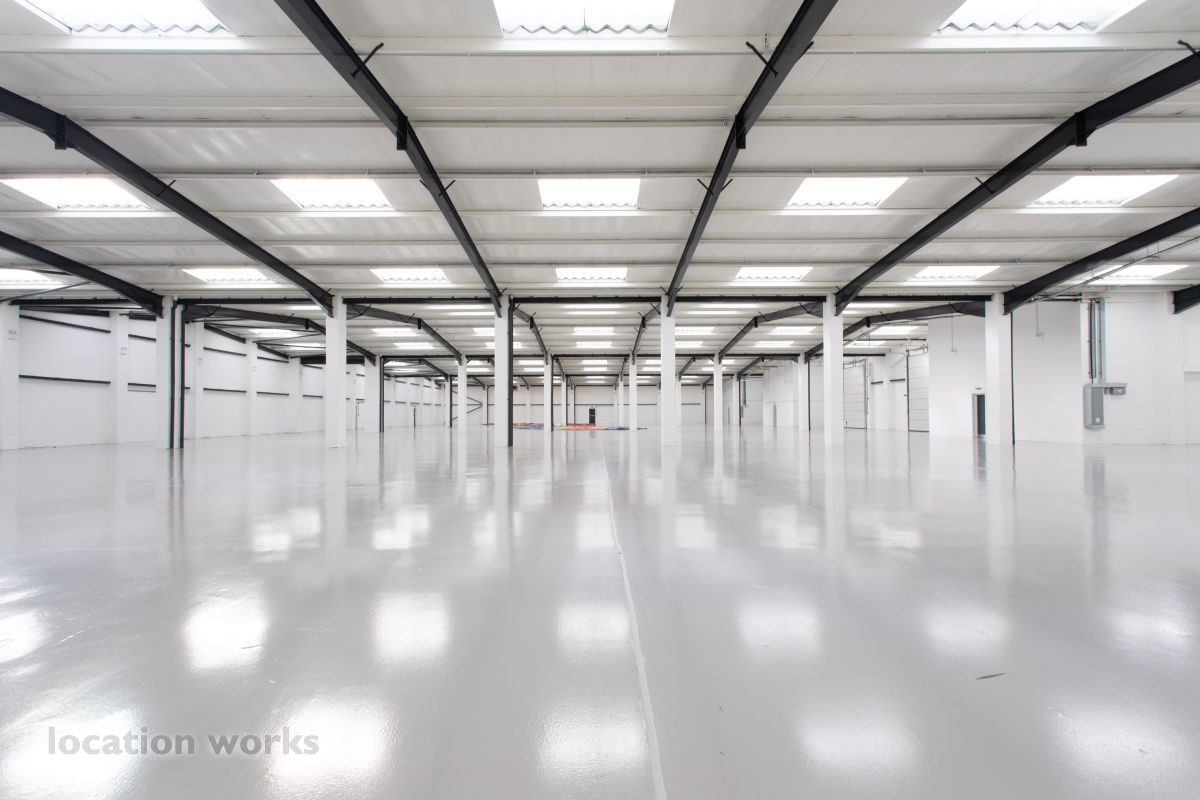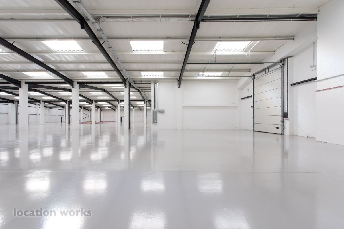 | Large empty warehouse, 4,400 sqm - 6m height to eaves - including two floors of offices and large car park, Long hire only. North west London.