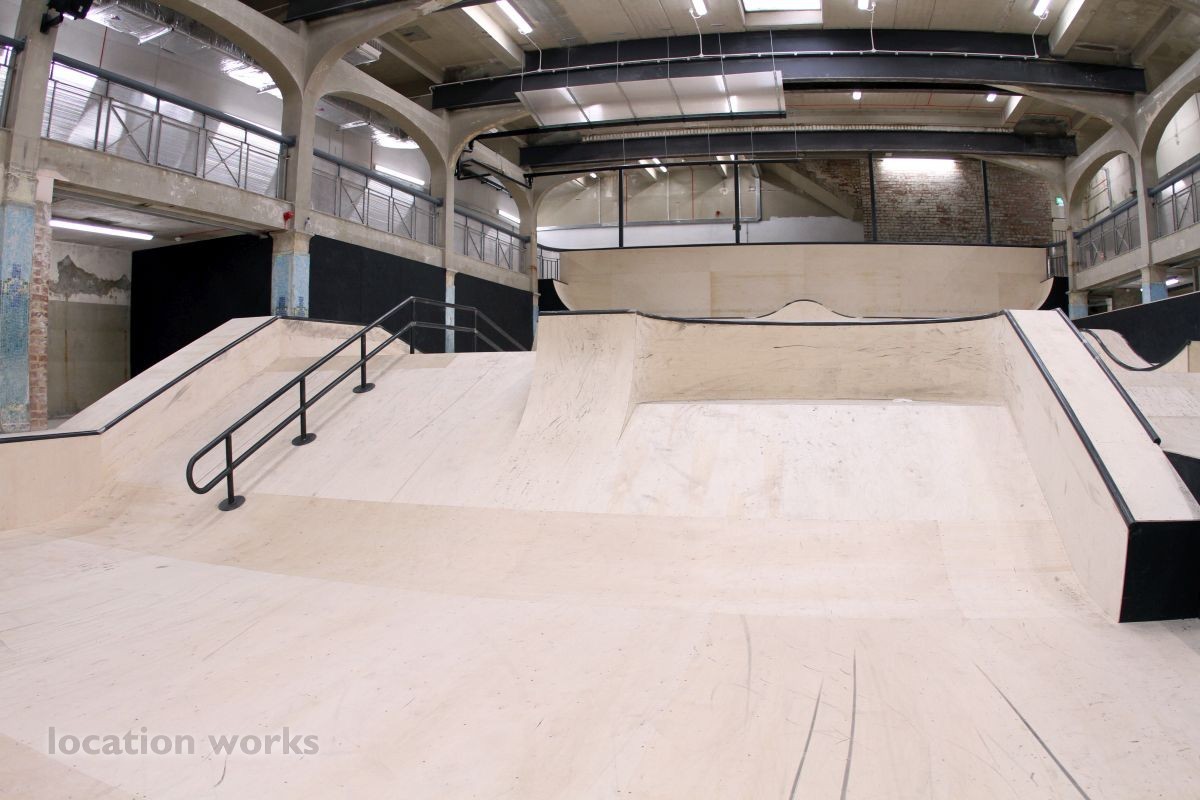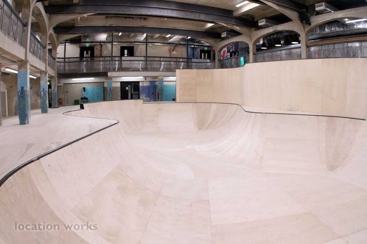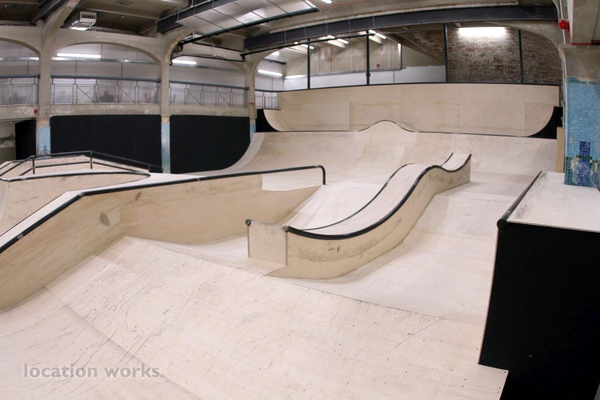 | Spectacular large indoor skatepark in a converted swimming pool, with two distinct skatepark spaces and a retail store. East Sussex.