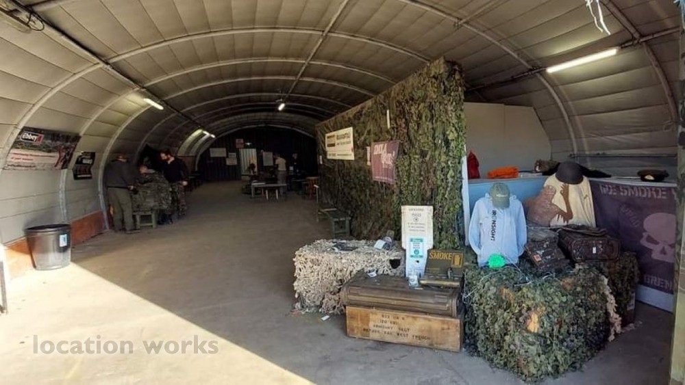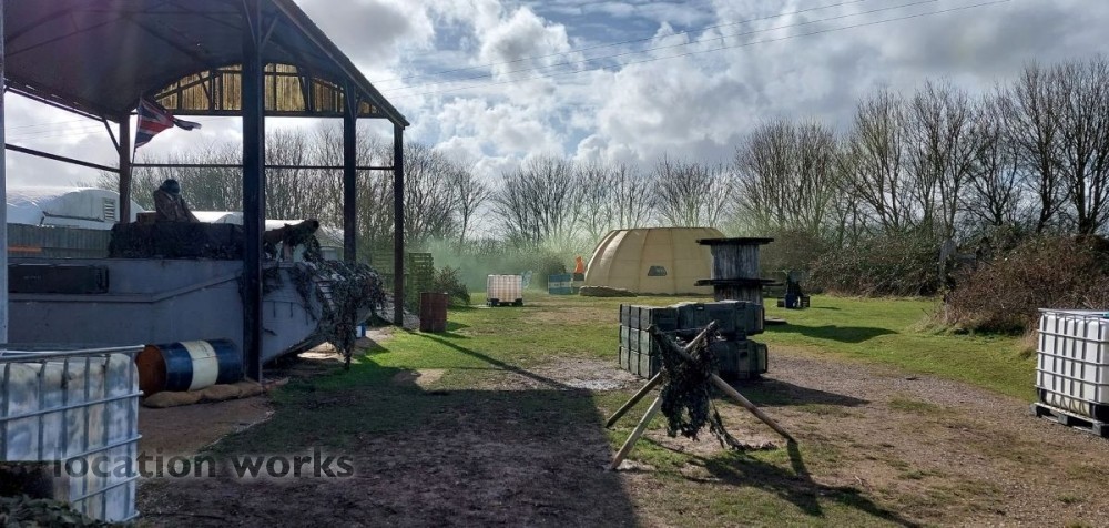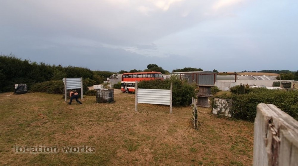 | Paintball site, including hangar, tunnels, vintage bus, a replica tank, and vast outdoor spaces. Hampshire.