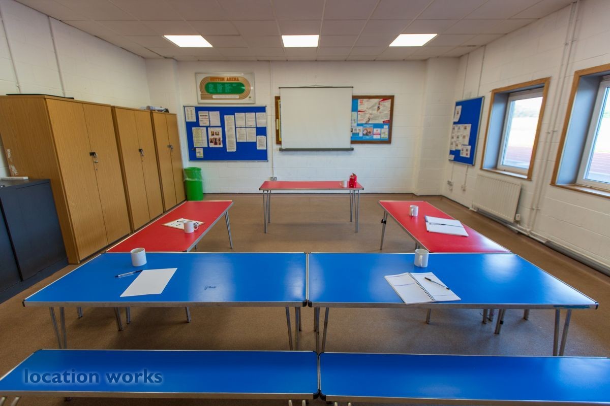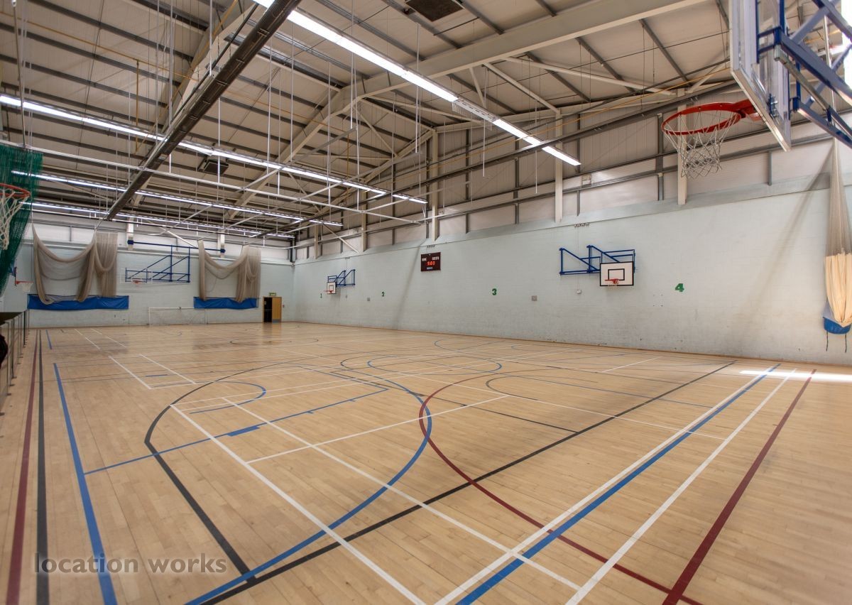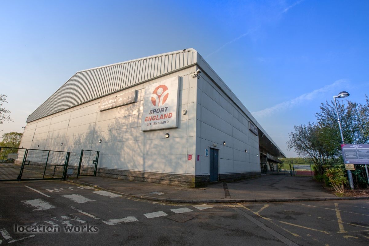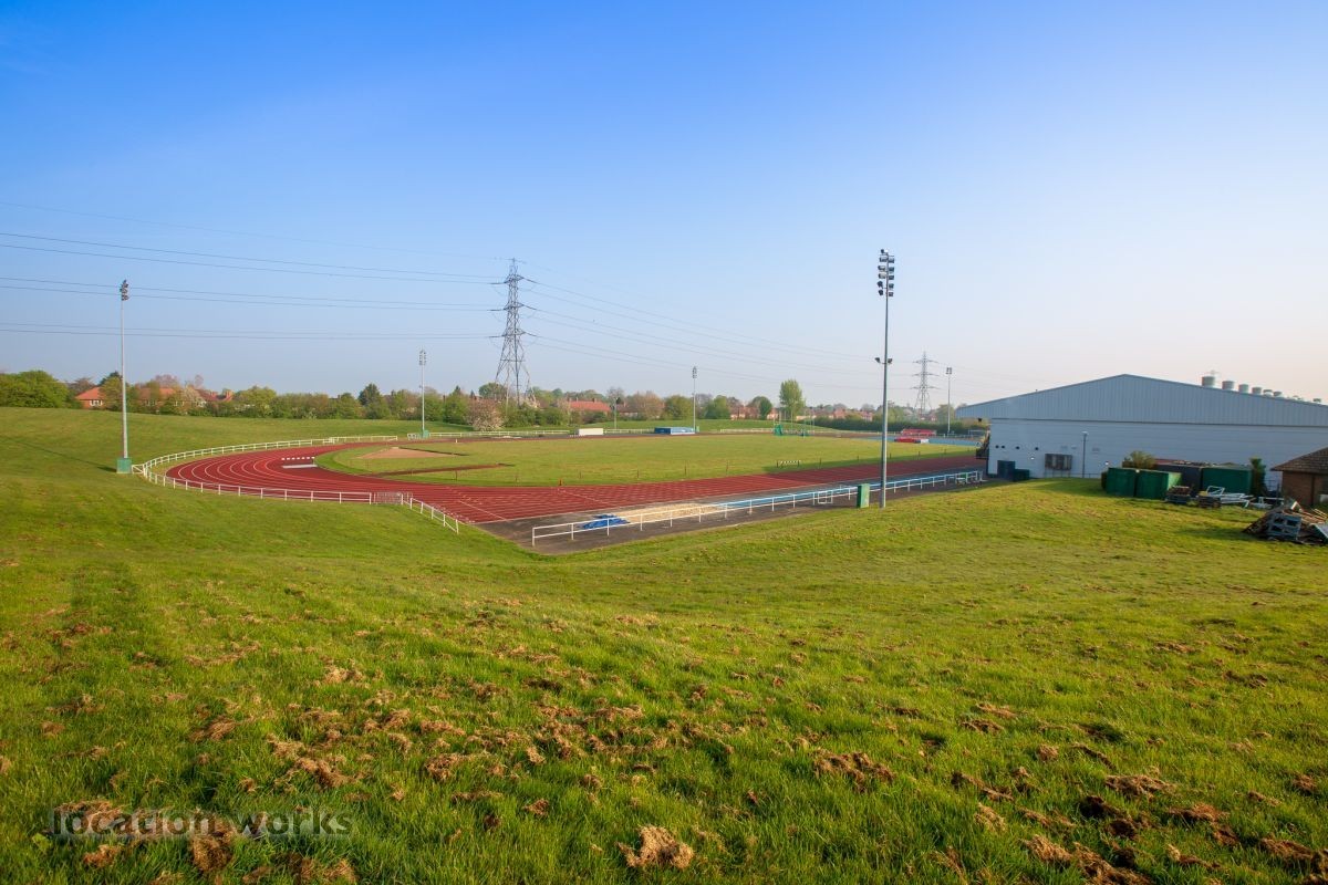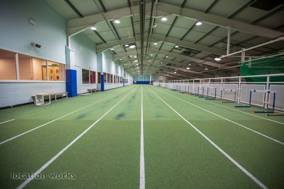 | Sports centre with running tracks, sports hall and large car park. Surrey.